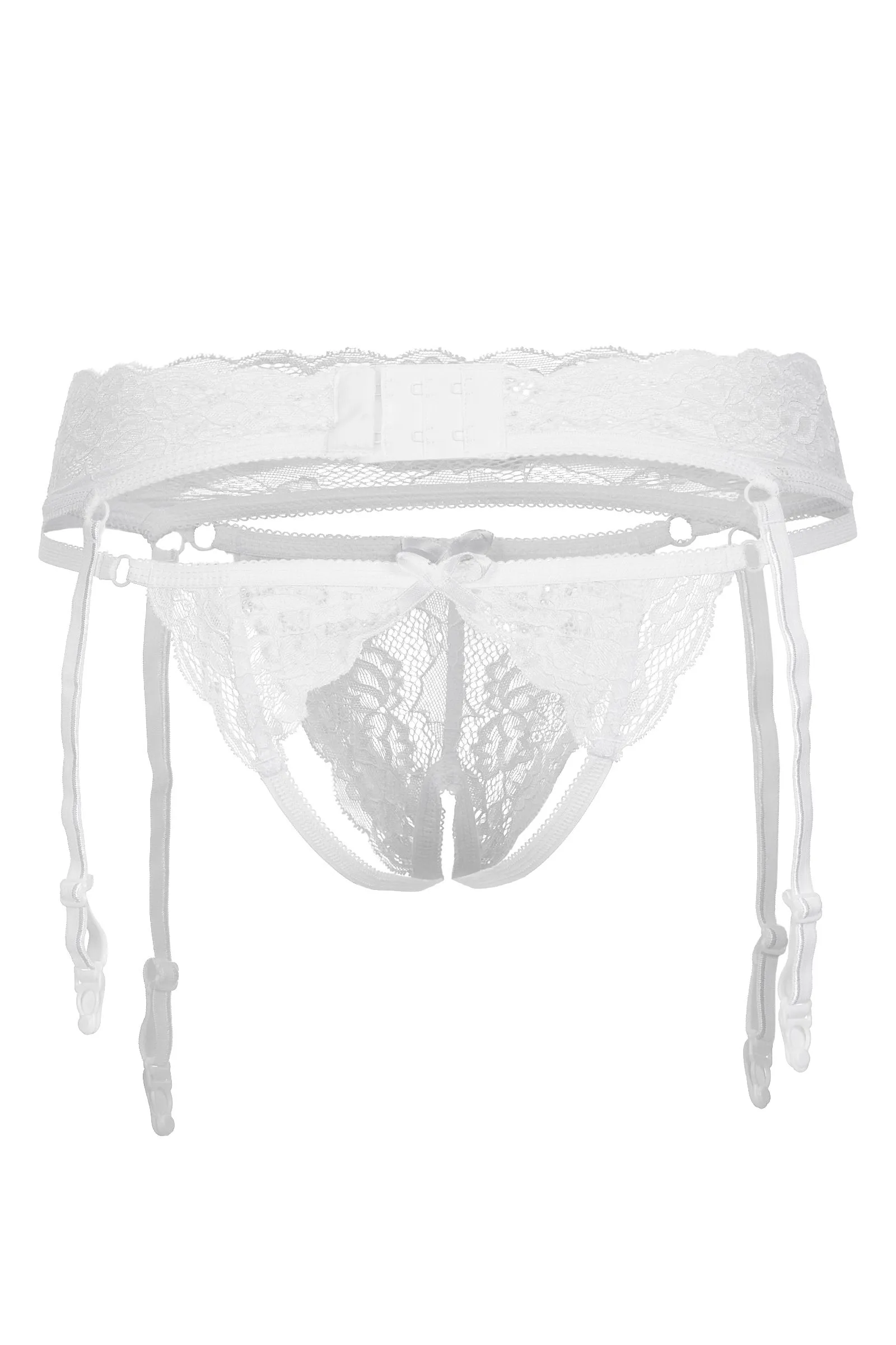 Эротический комплект Erolanta® Deborah: пояс для чулок и трусики, эластичные, кружевные, с ажурным краем. Трусики с атласными бантиками. Пояс с регулируемой застежкой и пажами. *Допускается замена кружева на аналогичное. Чулки в комплект не входят. На видео комплект Erolanta® Deborah дополнен бралеттом Erolanta® Odette.