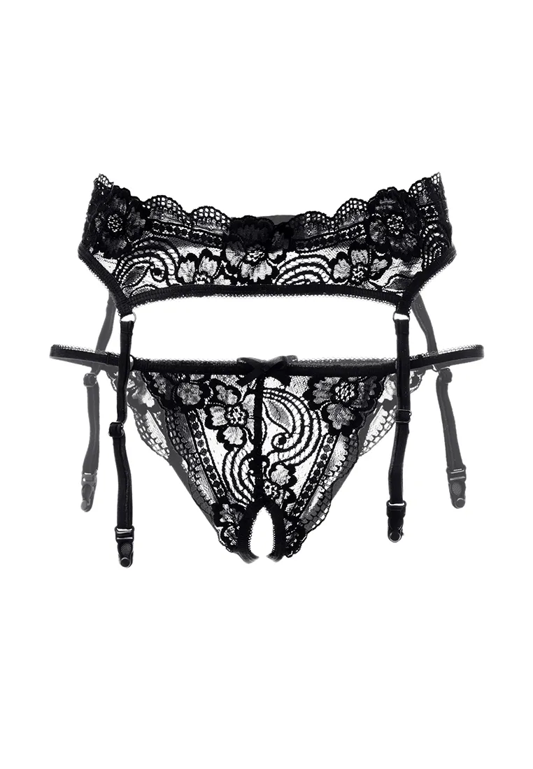 Эротический комплект Erolanta® Deborah: пояс для чулок и трусики, эластичные, кружевные, с ажурным краем. Трусики с атласными бантиками. Пояс с регулируемой застежкой и пажами. *Допускается замена кружева на аналогичное. Чулки в комплект не входят. На видео комплект Erolanta® Deborah дополнен идеально сочетающимся бралеттом Erolanta® Marisa.