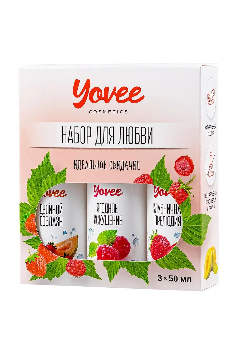 "Набор для любви" от бренда Yovee идеально подходит для эротических экспериментов. В одной упаковке три съедобных, увлажняющих геля на водной основе. Первый обладает сочным вкусом и ароматом клубники, второй - соблазнительной клубники и дыни, третий - малиновой нежностью с волнующими нотами мяты. Используйте самостоятельно или создайте свой вкус, смешивая их! Несмотря на сладость, гели не содержат сахара в составе, не нарушают микрофлору и pH-баланс. Подходят как для вагинального, так и для орального секса. Совместимы со всеми видами презервативов и игрушек для взрослых.