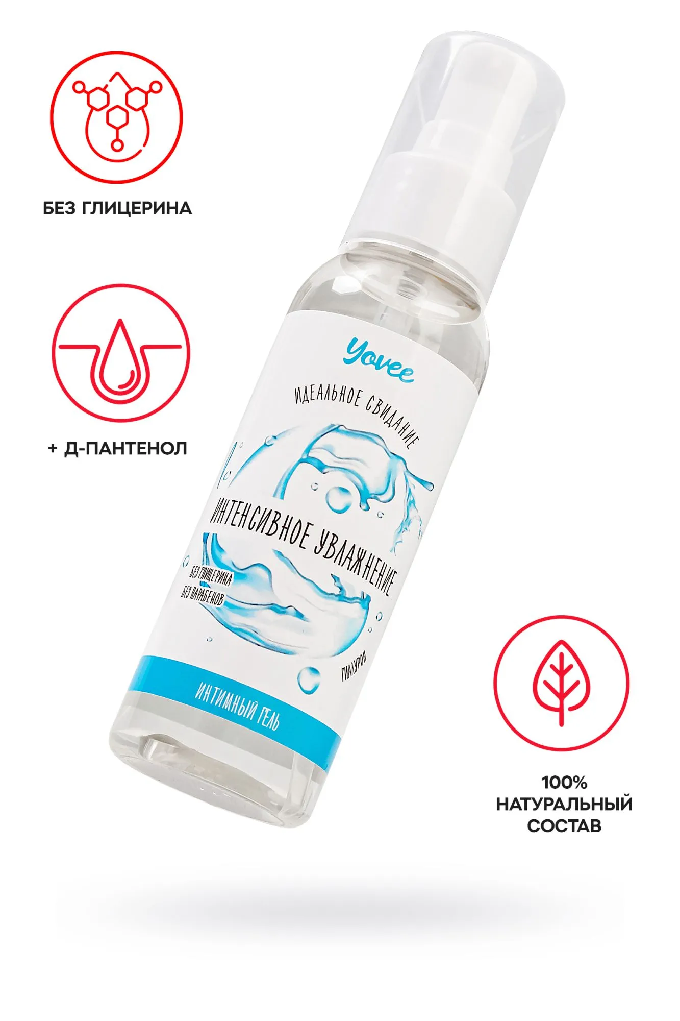Интимный гель Yovee «Интенсивное увлажнение» восполняет уровень естественной смазки, создает мягкое и комфортное скольжение без ощущения липкости. Благодаря натуральному составу смягчает и увлажняет, улучшает эластичность кожи и слизистой, снимает раздражение, устраняет сухость влагалища. Легко смывается водой, не оставляет следов на одежде и постельном белье. Подходит как для вагинального, так и для орального секса. Совместим со всеми видами презервативов и игрушек для взрослых. Простой и безопасный состав: вода; гидроксиэтилцеллюлоза - стабилизатор эмульсий, регулятор вязкости; Д-пантенол и гиалуроновая кислота препятствуют потере влаги, защищают слизистые, запускают процесс регенерации тканей; сорбат калия и бензоат натрия – безопасные пищевые консерванты, разрешенные в натуральной и органической косметике; лимонная кислота помогает поддерживать оптимальный уровень рН, является естественным консервантом. БЕЗ ГЛИЦЕРИНА БЕЗ ПАРАБЕНОВ БЕЗ КРАСИТЕЛЕЙ БЕЗ ВКУСА БЕЗ ЗАПАХА
