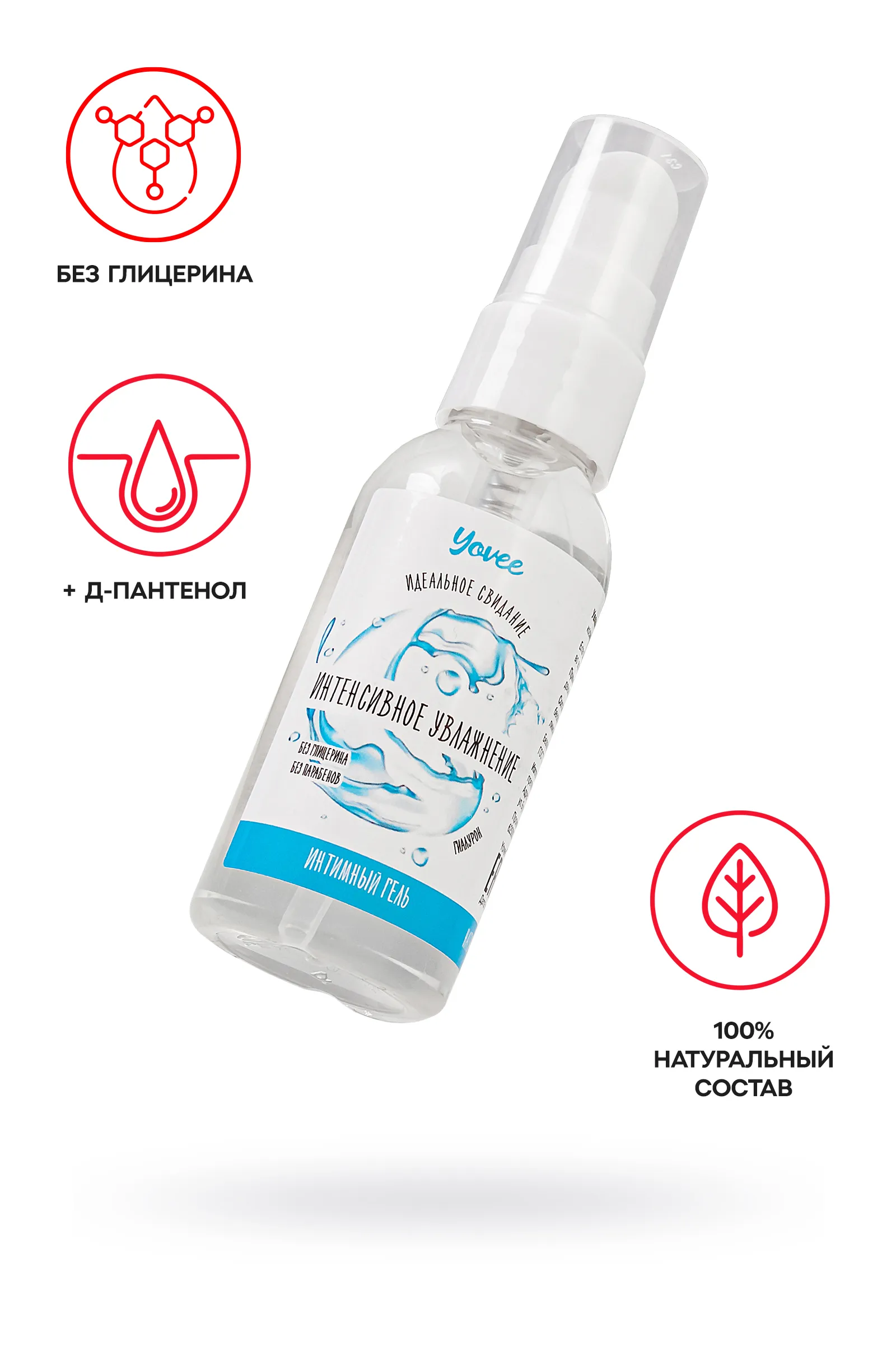 Интимный гель Yovee «Интенсивное увлажнение» восполняет уровень естественной смазки, создает мягкое и комфортное скольжение без ощущения липкости. Благодаря натуральному составу смягчает и увлажняет, улучшает эластичность кожи и слизистой, снимает раздражение, устраняет сухость влагалища. Легко смывается водой, не оставляет следов на одежде и постельном белье. Подходит как для вагинального, так и для орального секса. Совместим со всеми видами презервативов и игрушек для взрослых. Простой и безопасный состав: вода; гидроксиэтилцеллюлоза - стабилизатор эмульсий, регулятор вязкости; Д-пантенол и гиалуроновая кислота препятствуют потере влаги, защищают слизистые, запускают процесс регенерации тканей; сорбат калия и бензоат натрия – безопасные пищевые консерванты, разрешенные в натуральной и органической косметике; лимонная кислота помогает поддерживать оптимальный уровень рН, является естественным консервантом. БЕЗ ГЛИЦЕРИНА БЕЗ ПАРАБЕНОВ БЕЗ КРАСИТЕЛЕЙ БЕЗ ВКУСА БЕЗ ЗАПАХА