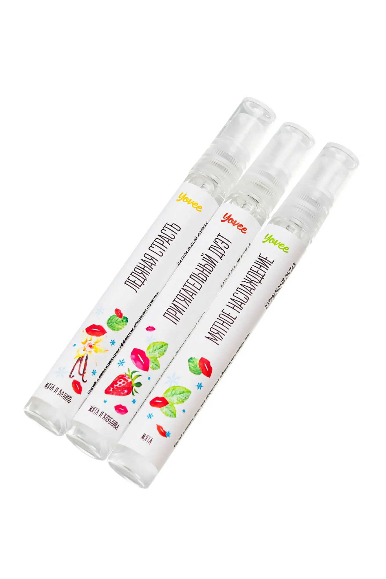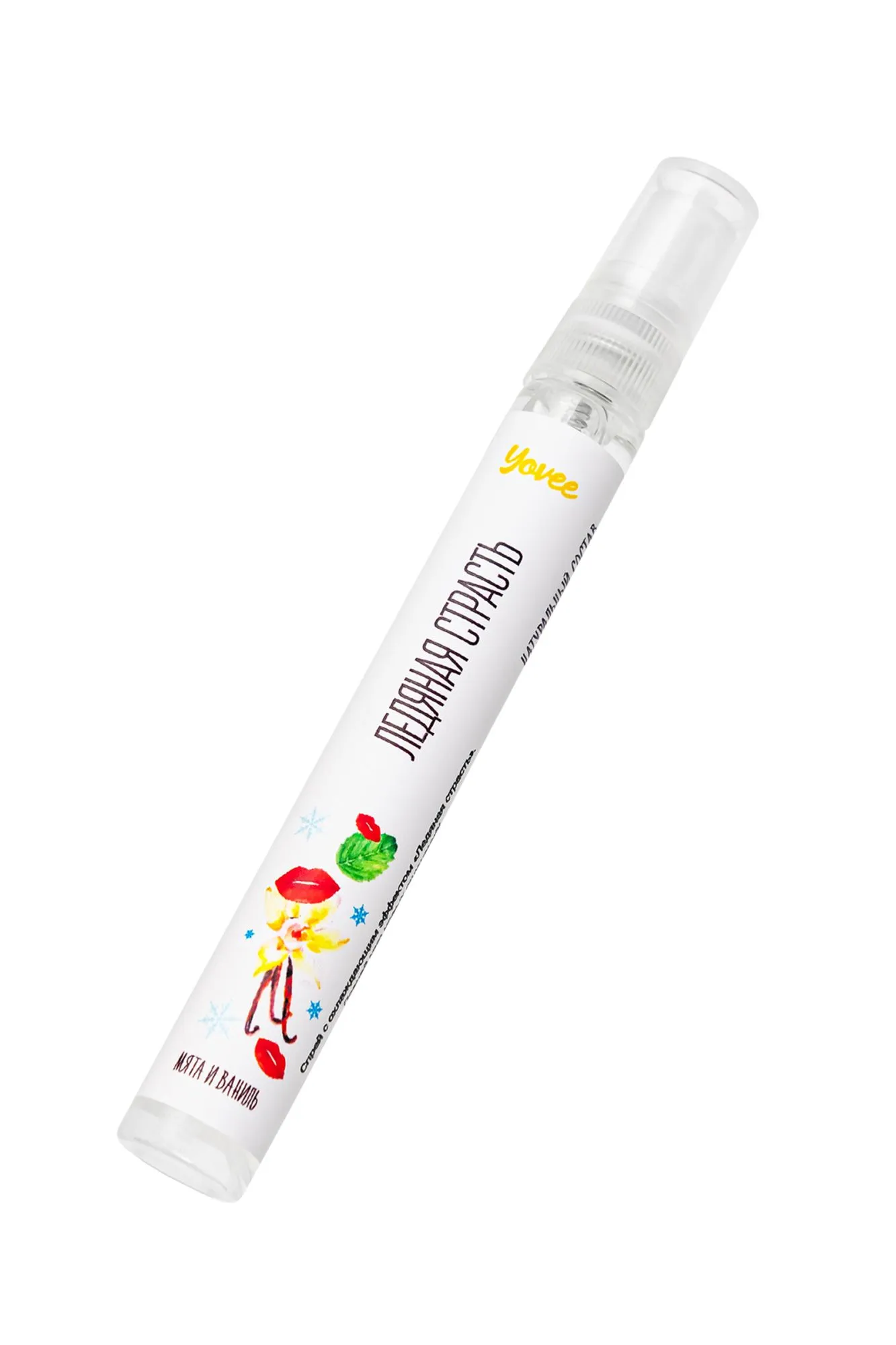 Обладая соблазнительным мятно-ванильным вкусом и приятным охлаждающим эффектом спрей Yovee «Ледяная страсть» усиливает удовольствие от секса и делает интимную игру еще более пикантной. Современные исследования подтвердили, что сладкий и теплый аромат ванили вызывает выработку эндорфинов (гормонов радости), тестостерона и других гормонов, способствующих сексуальному влечению. Мятный аромат поможет сбросить груз проблем, привести в порядок нервную систему и, следовательно, быть готовой в полной мере проявить свою чувственность при встрече с любимым человеком. Применение спрея притупляет рвотный рефлекс и помогает освоить технику "глубокая глотка". Также спрей можно использовать для усиления чувствительности нервных окончаний сосков. Под воздействием активных компонентов восприимчивость эрогенных зон станет выше, а ласки еще более приятными. Распылять средство нужно непосредственно перед оральным сексом. Длительность эффекта зависит от количества нанесенного спрея. Применение: встряхните, распылите 2-3 дозы и подождите несколько секунд, чтобы почувствовать эффект. Освежает дыхание Усиливает слюноотделение Оказывает охлаждающее и возбуждающее воздействие Нейтрализует рвотный рефлекс, помогает применить технику "глубокая глотка" Дарит новые ощущения Активные ингредиенты: Ментол - основной компонент эфирного масла, содержащегося в листьях мяты перечной. Избирательно раздражая холодовые рецепторы, вызывает ощущение холода, жжения, покалывания с последующим небольшим понижением чувствительности. Эфирное масло эвкалипта - афродизиак мягкого действия. Повышает сексуальную энергию, вселяет уверенность, придает силы, восстанавливает утраченные силы. Благодаря свойству эвкалиптового масла подавлять канцерогенные оральные бактерии, его часто используют в средствах для освежения дыхания и оздоровления полости рта. Натуральное эфирное масло мяты и масляный экстракт ванили усиливают возбуждающий эффект.