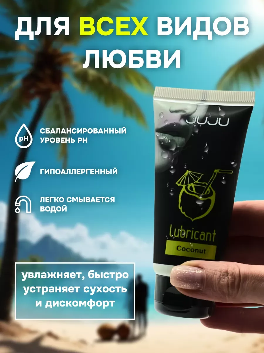 Съедобный лубрикант со вкусом кокоса отлично подойдет для любого вида близости. Водная основа смазки позволяет разнообразить интимную жизнь, обеспечивая продолжительное шелковистое скольжение. Лубрикант можно использовать с любыми интим игрушками, а также с презервативами. Состав: вода очищенная, глицерин, гидроксиэтилцеллюлоза, ароматизатор пищевой, бензоат натрия, сорбат калия, пропиленгликоль, сахаринат натрия, лимонная кислота, объем – 50 мл, производитель – JuJu (Россия). срок годности-3 года.