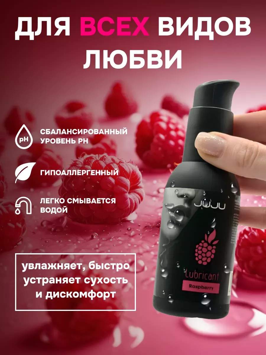 Съедобный лубрикант со вкусом малины отлично подойдет для любого вида близости. Водная основа смазки позволяет разнообразить интимную жизнь, обеспечивая продолжительное шелковистое скольжение. Лубрикант можно использовать с любыми интим игрушками, а также с презервативами. Состав: вода очищенная, глицерин, гидроксиэтилцеллюлоза, ароматизатор пищевой, бензоат натрия, сорбат калия, пропиленгликоль, сахаринат натрия, лимонная кислота, объем – 100 мл, производитель – JuJu (Россия). срок годности-3 года.