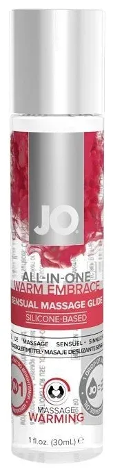 JO All-In-One Massage Glide Warming – универсальный гель на силиконовой основе, содержащий стимулирующие ингредиенты. Согревающие компоненты подарят дополнительные приятные ощущения чувственного расслабления. Гель имеет идеальную консистенцию для массажа, маслянистая структура без липкости и скатывания создаст невероятную гладкость и шелковистость скольжения. А также делает нанесенные на тело татуировки ярче и увлажняет кожу. В состав геля входит силикон высочайшего качества. Можно использовать как лубрикант.