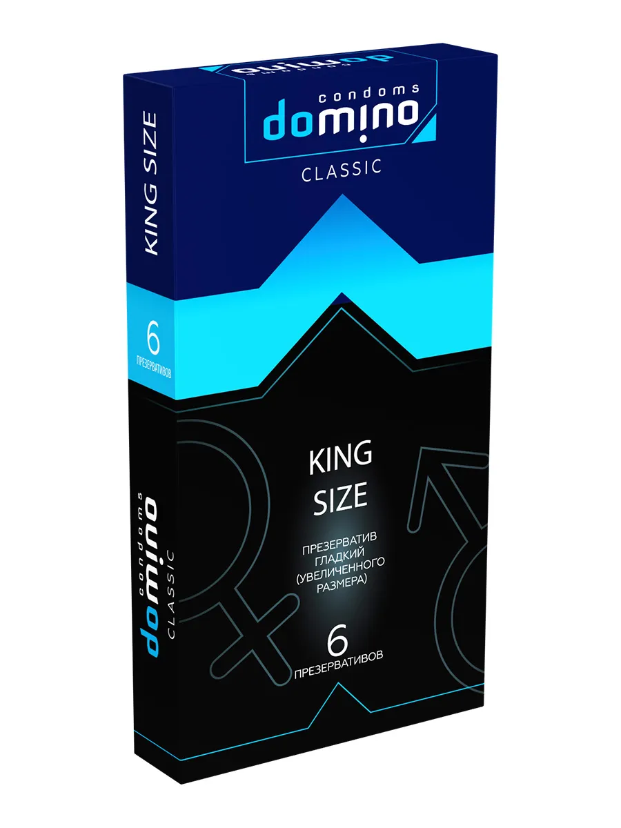 Для тех, кому нужен действительно королевский размер Luxe DOMINO CLASSIC создали презервативы King size увеличенного размера! С ними вы ощутите комфорт по-новому. Гладкие презервативы с накопителем из высококачественного латекса в смазке. Презервативы Luxe DOMINO изготовлены с тщательным соблюдением европейских технологий качества и прошли электронную проверку на прочность и целостность материалов. Luxe DOMINO CLASSIC King size не подведут в самый ответственный момент. Вам не придется думать о том, что он будет скатываться или соскальзывать. Номинальная длина – 19 мм, ширина - 52 мм, толщина стенок - 0,06 мм. Презервативы Luxe DOMINO CLASSIC King size – для по-настоящему больших мальчиков, которые уверены в себе и знают чего хотят. В стильной фирменной упаковке 6 штук
