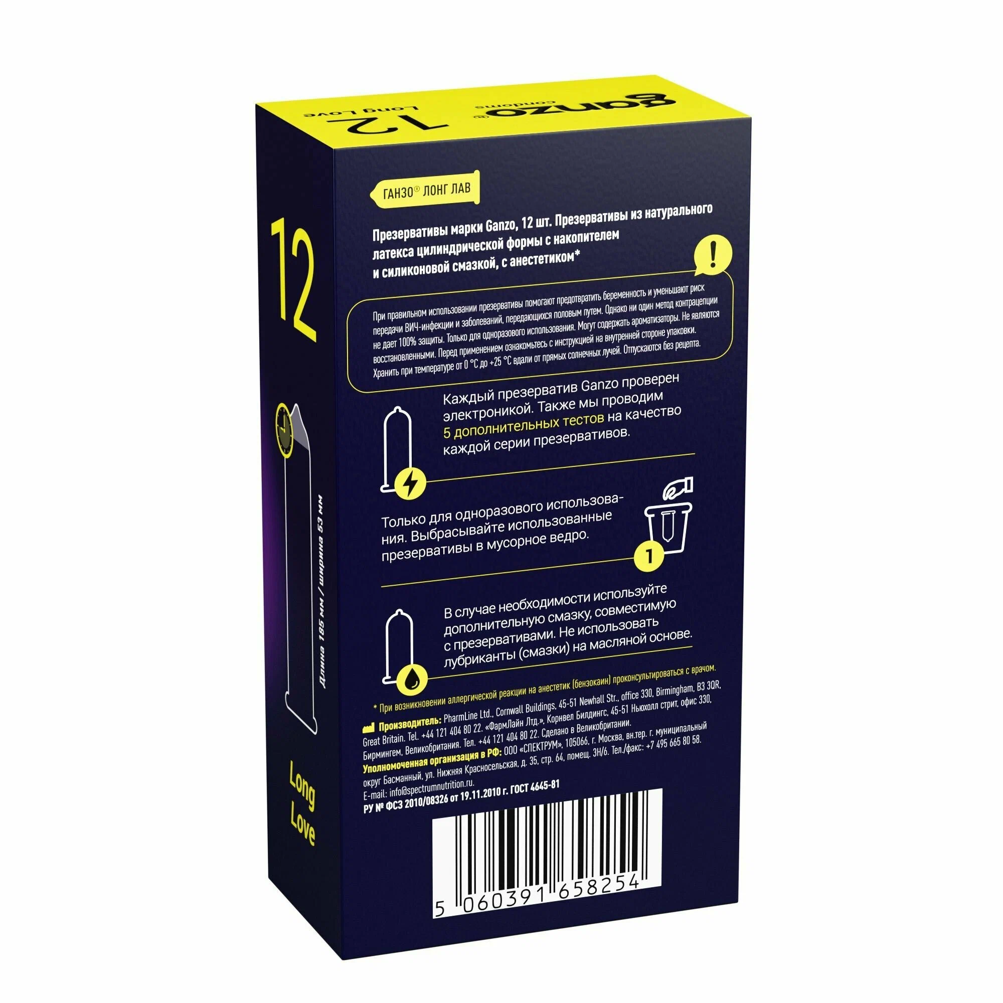 В упаковке содержится 12 презервативов. Хранить при температуре от 0 до 30 °C. Не использовать после истечения срока годности.