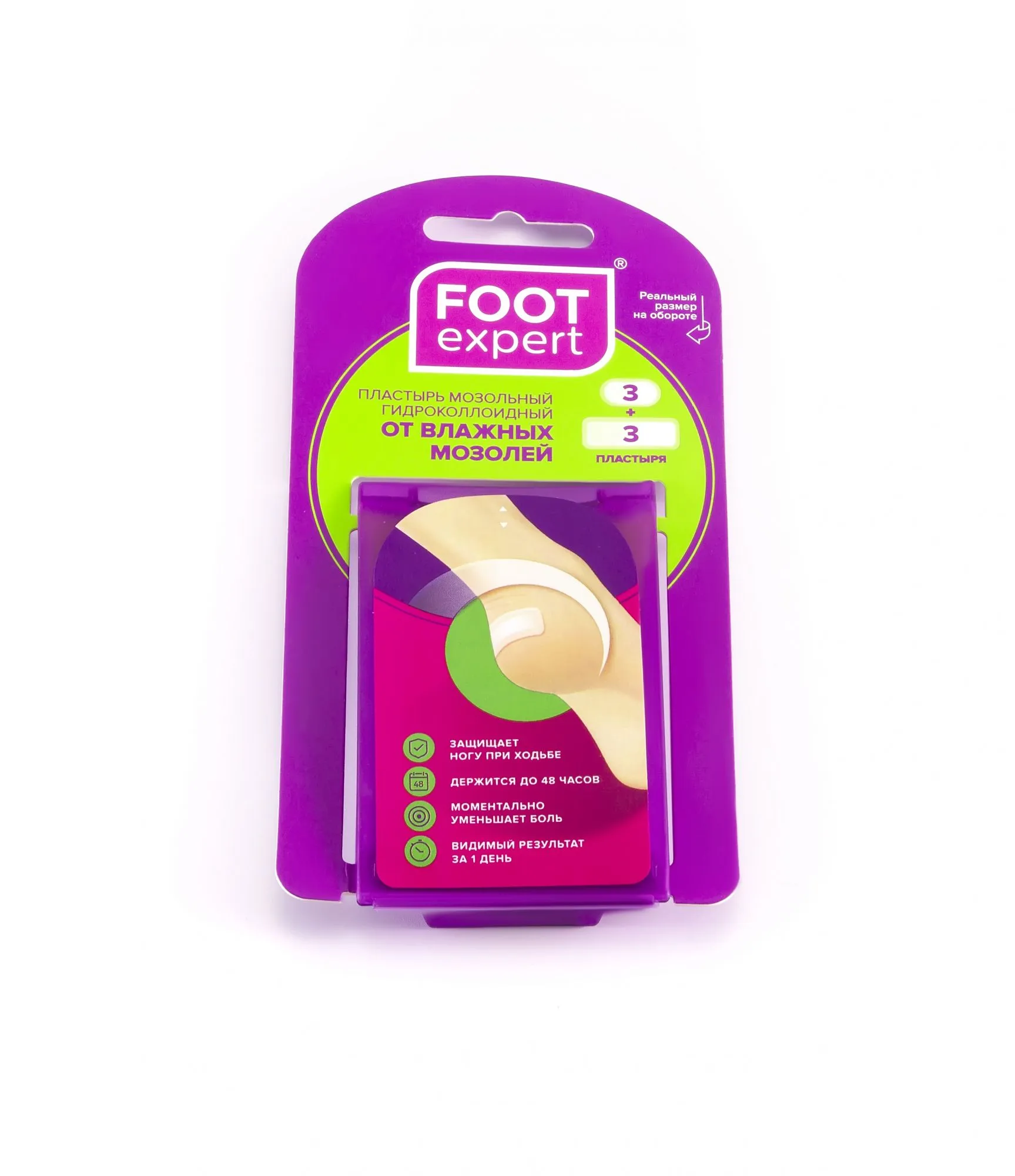 FOOT EXPERT - экспресс-решение при влажных мозолях. FOOOT Expert производится по гидроколлоидной технологии, которая позволяет средству работать по принципу второй кожи. В состав пластыря входит гидроколлоидный полимер, состоящий из мельчайших частиц, которые образуют на поверхности тонкую пленку. При воздействии на пораженную кожу пленочка быстро впитывает отделяемую из раны жидкость, увлажняет поверхность кожи, хорошо пропускает воздух, не позволяет формироваться рубцам и корочкам при заживлении мозоли.