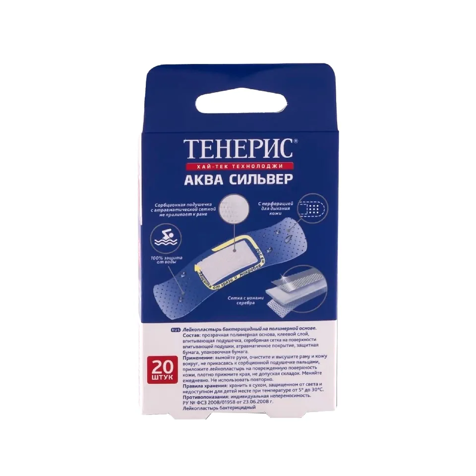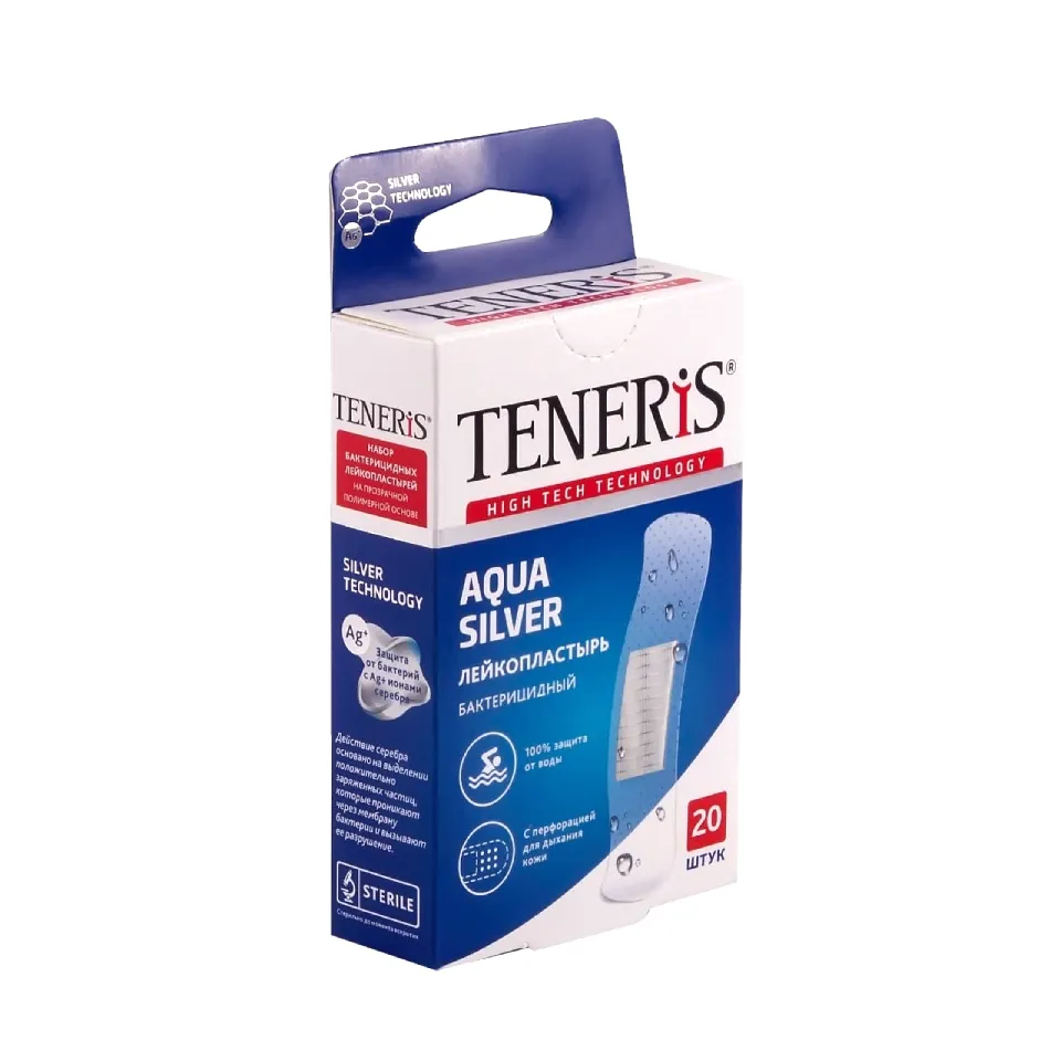 Лейкопластырь бактерицидный на основе прозрачного перфорированного полимера. Дышащий. Водонепроницаемый, можно принимать душ и плавать в бассейне. Антитравматическое покрытие раневой подушечки с ионами серебра.