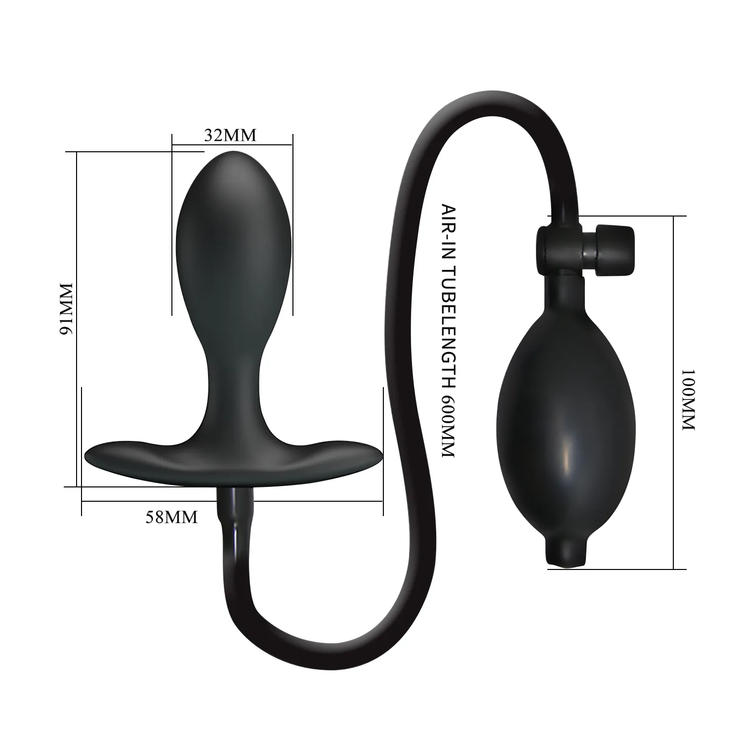 Анальная пробка Inflatable Anal Plug Pretty Love, изготовленная из силикона. Размеры: ширина 5,8 см, длина 9,1 см, диаметр 3,2 см. Трубка длиной 60 см и помпа длиной 10 см обеспечивают удобство использования. Пробка предназначена для накачивания после введения, что обеспечивает интенсивное давление на P-точку и комфортное использование. Встроенный предохранительный клапан позволяет быстро и безопасно сдуть пробку после использования. Рекомендуется вставлять пробку перед накачиванием, чтобы воздух равномерно распределился внутри. Весит 130 грамм.