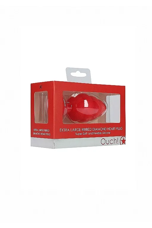Extra Large Ribbed Diamond Heart Plug - роскошное силиконовое анальное украшение, состоящее из пяти ребер разного диаметра у проникающей части и декоративного украшения в виде кристалла в форме сердца, имитирующего бриллиант. Гладкая обтекаемая форма и небольшой закругленный кончик способствует комфортному проникновению и получению приятных тактильных ощущений. Идеальная игрушка, подходящая для сужения влагалища, подготовки к анальному сексу и украшению тела.