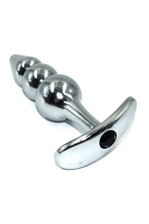 Литая анальная пробка имеет плавные изгибы, три постепенно увеличивающиеся к основанию сферы, округлый кончик и гладкую фактуру шлифованного металла, обеспечивающие комфортность проникновения и насыщенность стимуляции. Легкий и прочный алюминиевый сплав гарантирует долговечность и гигиеничность, а также абсолютную безопасность даже при постоянном ношении. Гладкая подставка в форме треугольника украшена небольшим черным кристаллом.