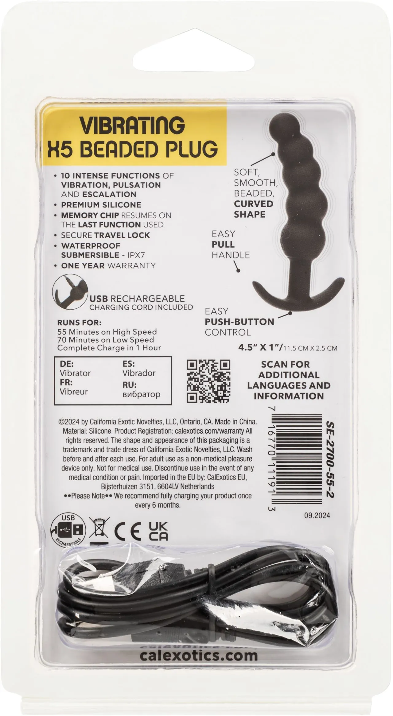 Перезаряжаемый и эффективный, он быстро заряжается, полностью заряжаясь всего за один час. После зарядки он обеспечивает до 70 минут непрерывной вибрации на низкой скорости или 55 минут на высокой интенсивности. Благодаря функции блокировки безопасности для путешествий, Boundless Vibrating X5 Beaded Plug гарантирует, что ваши интимные приключения останутся незамеченными, независимо от того, куда вы отправитесь развлекаться.
