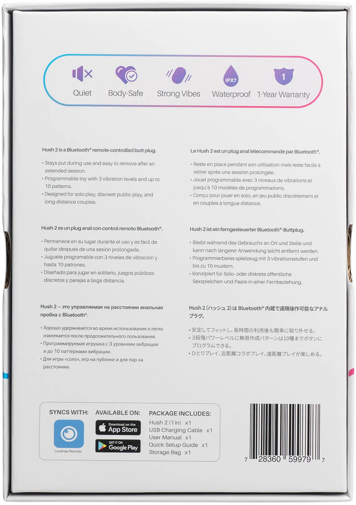 Lovense Hush 2 — это управляемая на расстоянии анальная пробка с Bluetooth. Размер M идеально подойдет для уверенных пользователей анальных практик. Полностью гладкое и бесшовное покрытие из медицинского силикона идеально подходит даже для длительного ношения,- просто выберите нужный вам уровень вибрации: низкий, средний или высокий, и наслаждайтесь ощущениями до 8-ми часов непрерывно. Шелковистый материал, узкий кончик и плавная форма обеспечивают комфортное введение, а выпуклая форма идеально соответствует естественной анатомии анального отверстия. Узкая ножка и широкий ограничитель гарантируют безопасность использования.