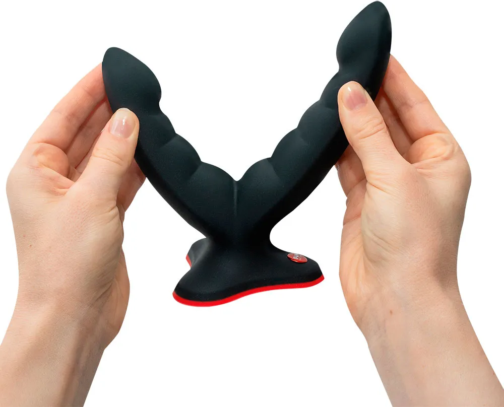 Игрушку можно использовать для двойного проникновения, вводя по одному отростку анально и вагинально.