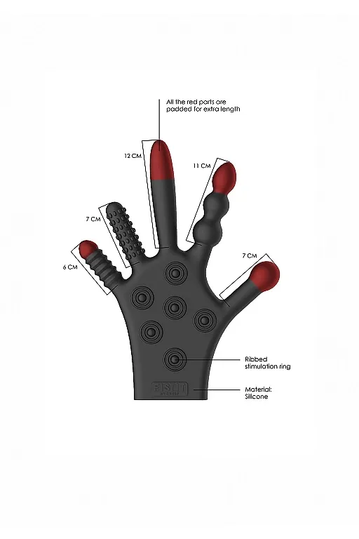 Рельефная поверхность ладони и различное текстурированное покрытие на всех остальных пальцах обеспечат вагинальную и анальную стимуляцию.