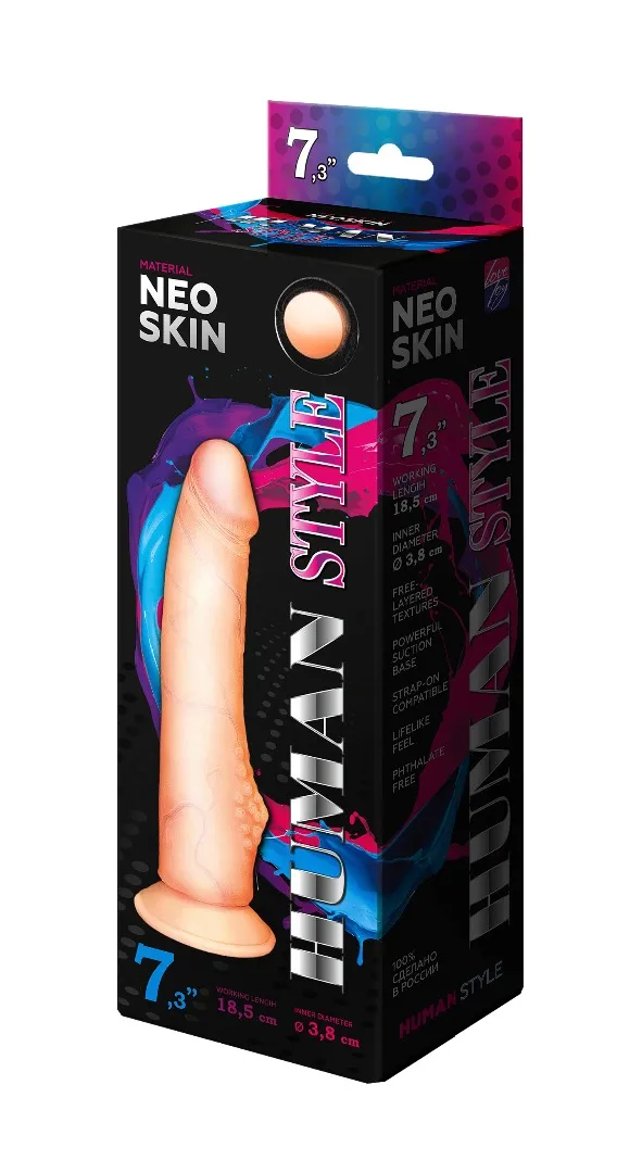 Реалистичный фаллоимитатор телесного цвета. Имеет форму члена с ярковыраженной головкой. Необычайно приятный, рельефный, выполненный из материала «Неоскин» , передающий эффект мягкой реалистичной текстуры кожи, не имеет швов. В основании имеется отличная присоска. Характеристика: общая длина – 19 см, рабочая длина-18,5 см, максимальный диаметр- 3,8 см. Упаковка- картонная коробка с принтом.