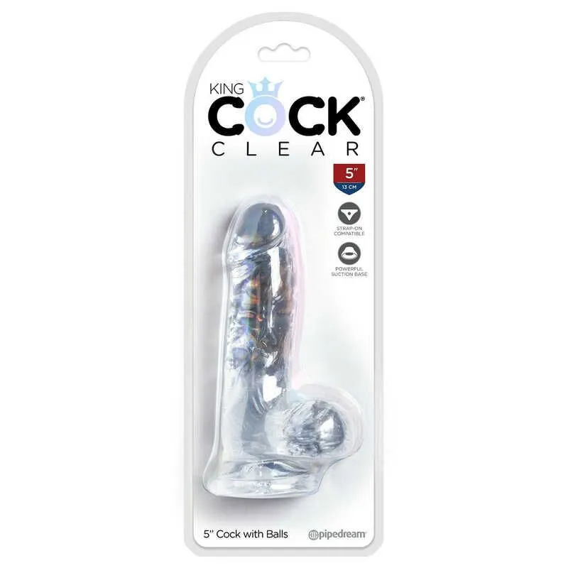 Если Вы желаете приобрести в коллекцию новую, интересную игрушку – фаллоимитатор King Cock Clear 5 Cock with Balls подойдет как нельзя лучше. Модель выполнена из кристально-прозрачного поливинилхлорида и выглядит как льдинка в форме мужского фаллоса. Игрушка в точности имитирует внешний вид члена, досконально копируя самые мелкие детали – головку с хорошо очерченным краем, складки крайней плоти, набухшие вены и бугорки. Основание сделано в виде красивой морщинистой мошонки, под которой располагается присоска. Вы можете фиксировать фаллоимитатор на любой гладкой поверхности, например стенке душевой кабины.