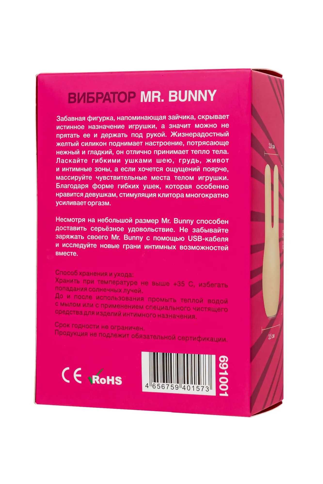 Пригласите поиграть забавного Mr. Bunny, и он с радостью составит компанию и в парной, и в одиночной игре. Симпатичный вибратор для внешней стимуляции эрогенных зон помещается в ладони. В распоряжении игроков 10 режимов вибрации и легкое управление одной кнопкой. Забавная фигурка, напоминающая зайчика, скрывает истинное назначение игрушки, а значит можно не прятать ее и держать под рукой. Жизнерадостный желтый силикон поднимает настроение, потрясающе нежный и гладкий, он отлично принимает тепло тела. Ласкайте гибкими ушками шею, грудь, живот и интимные зоны, а если хочется ощущений поярче, массируйте чувствительные места телом игрушки. Благодаря форме гибких ушек, которая особенно нравится девушкам, стимуляция клитора многократно усиливает оргазм. Несмотря на небольшой размер Mr. Bunny способен доставить серьёзное удовольствие. Не забывайте заряжать своего Mr. Bunny с помощью USB-кабеля и исследуйте новые грани интимных возможностей вместе.