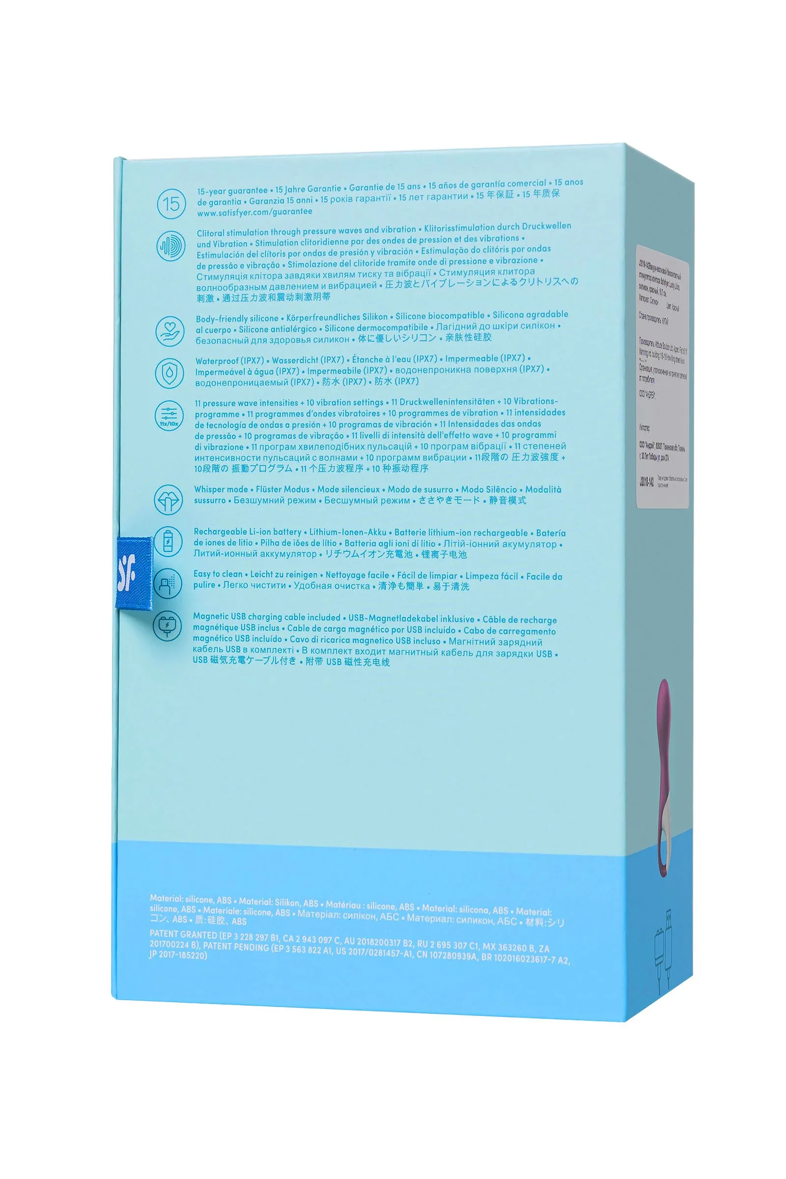 Стимулятор клитора Lucky Libra berry создан немецким брендом Satisfyer для сексуальных радостей. Инновационная технология Air Pulse в сочетании с проницающей вибрацией дарит умопомрачительные ощущения, меняющие представление об оргазмах. Lucky Libra представляет собой небольшой вибратор с выпуклой головкой, в которой имеется раструб для бесконтактной стимуляции клитора. 11 режимов воздушной пульсации сочетаются с 10 паттернами вибрации, создавая самые эффективные комбинации для максимально крутых оргазмов. Программами можно управлять независимо друг от друга. Эргономичный дизайн ручки позволяет уверенно управлять стимулятором даже во время самых неистовых моментов. Интуитивно понятное управление тремя кнопками, расположенными на ручке игрушки. Шелковистый силиконовое покрытие — фирменный знак Satisfyer, тактильно нежный и приятный на ощупь. Lucky Libra позаботится о самых чувственных прикосновениях даже в ванной и душе. Благодаря водонепроницаемости IPX7 игрушку можно погружать под воду до 30 минут. Рекомендуется использовать с лубрикантами на водной основе. Особенности: Вибрирующая головка для эрогенных зон и раструб с воздушной пульсацией для клитора. Простое управление отдельными моторами двумя кнопками. 10 режимов вибрации и 11 режимов волновой стимуляции. Сочный сливовый цвет и мягкий, эластичный силикон без запаха, без аллергенов и вредных для здоровья веществ. 100% водонепроницаемый - IPX7. Время работы 60 минут. Перезаряжаемый, магнитный USB-кабель, время зарядки 3 часа.
