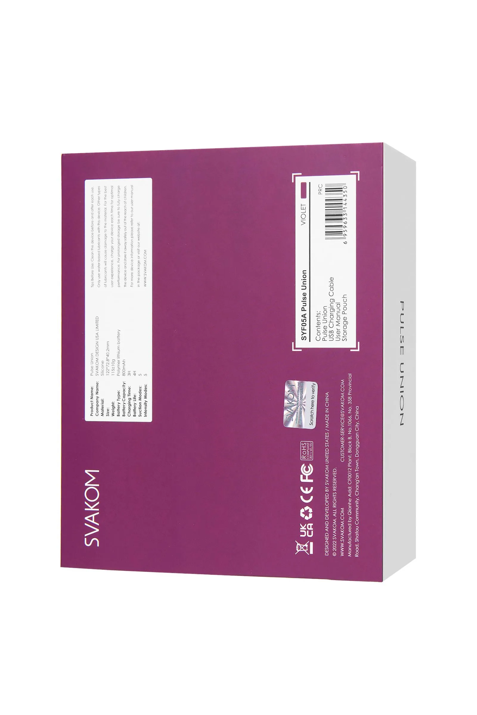 SVAKOM запатентовали новейшую технологию Pulse Technology™ и сейчас они рады показать вам, на что она способна. С ней вы испытаете самое глубокое удовольствие, которое вы когда-либо испытывали. Цветной дисплей Легко переключайтесь между 5 уникальными режимами вакуумной стимуляции. Для этого устройство оснащено динамическим светодиодным дисплеем, каждый режим имеет свой цвет. Память устройства Откройте для себя режим, который действительно заставляет вас двигаться вперед, и никогда не оглядывайтесь назад. Pulse Union переходит прямо в ваш самый последний режим каждый раз, когда вы включаете его и приступаете к делу. Путешествия Где бы вы ни находились, держите Pulse Union наготове. Используйте легкую компактную конструкцию в сочетании с Travel Lock для удобства и безопасности перемещения. Водонепроницаемость Возьмите Pulse Union в путешествие с влажным и сухим климатом. Игрушка полностью водонепроницаема, может быть использована везде, где бы вам этого захотелось. Наслаждайтесь простой и легкой очисткой.