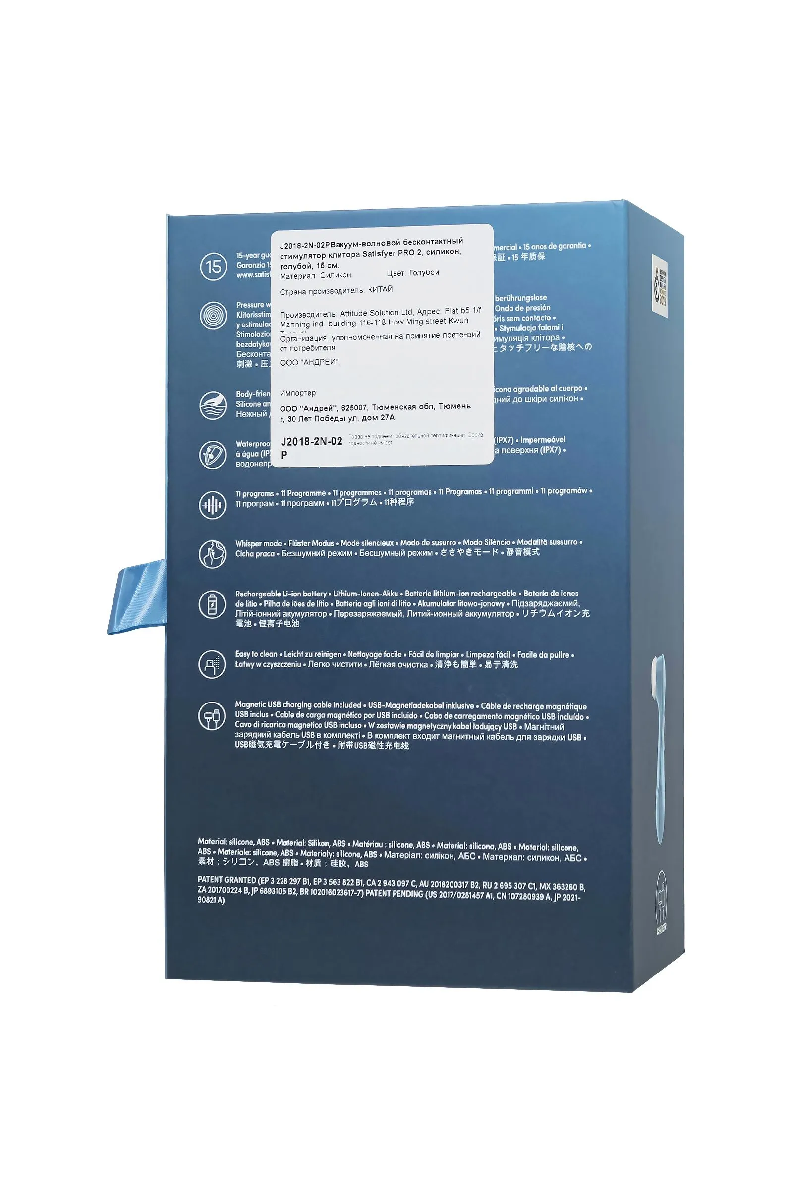 Уникальная 15-летняя гарантия подтверждает исключительное качество продукта. Стильный современный дизайн делает этот стимулятор не только функциональным устройством, но и элегантным аксессуаром.