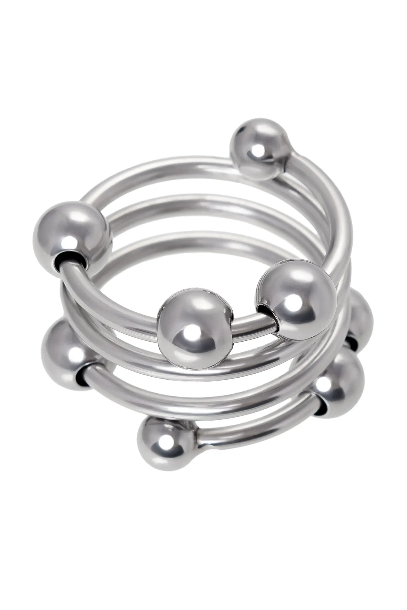 Металлическое кольцо для головки пениса многократно усилит удовольствие обоих партнеров. Кольцо выполнено в виде спирали с многочисленными подвижными бусинами, которые стимулируют самые чувствительные зоны обоих партнеров. При каждом движении шарики массируют уздечку, вход во влагалище и зону G, делая секс более захватывающим. Кольцо фиксируется под головкой полового члена, благодаря чему головка становится более твердой, выраженной и особо чувствительной, а эрекция – продолжительной. Металл – один из самых безопасных и экологичных материалов, его можно использовать со всеми видами смазок и он прост в уходе. Кольцо из металла – особо прочное и тугое, добавьте немного лубриканта для комфортного надевания и снятия. Как использовать: Выбирайте кольцо подходящего диаметра, чтобы испытать максимальное удовольствие. Наденьте кольцо на половой член в эрегированном состоянии, для этого добавьте немного лубриканта. Зафиксируйте кольцо под головкой пениса и убедитесь, что оно плотно прилегает. Не допускайте дискомфорта и не носите кольцо более 30 минут. Как подобрать размер: Кольцо не должно быть слишком тугим или болтаться, но при этом оно должно легко надеваться и сниматься. Чтобы правильно подобрать нужный диаметр кольца, снимите 2 мерки с полового члена. Оберните мягкую измерительную ленту вокруг пениса чуть ниже головки и запишите полученные значения: одно - в расслабленном состоянии, другое – в эрегированном. Сложите ваши мерки, разделите на 2, и затем разделите на 3,14. Полученное значение – оптимальный диаметр подходящего вам кольца. Для дополнительной безопасности измерьте самую широкую часть на головке пениса и разделите на 3,14. Зная диаметр шляпки пениса, вы сможете подобрать достаточно удобное кольцо, которое не будет соскальзывать.