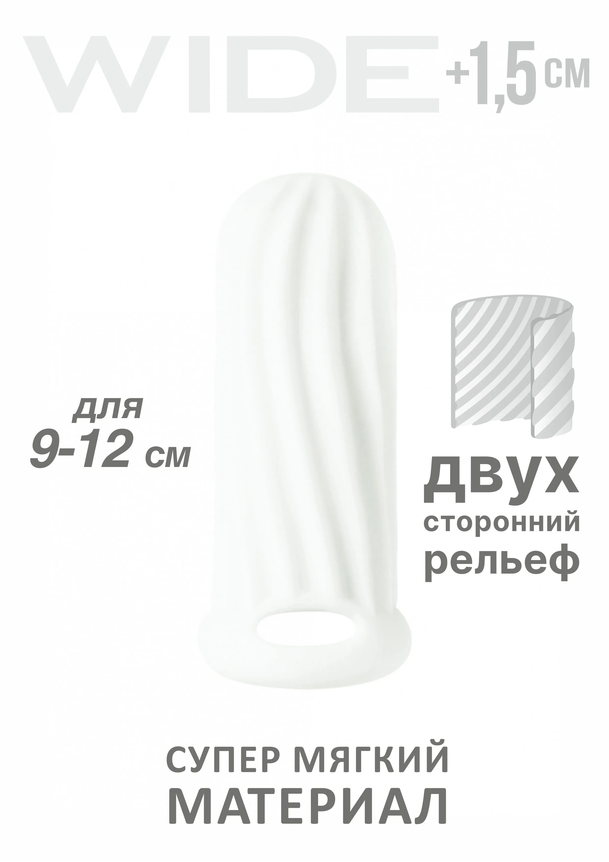 Насадка Wide коллекции Homme обеспечивает увеличение размера пениса в ширину. Материал насадки - гипоаллергенный, создающий имитацию мягкой и шелковистой «кожи» ТПЕ. Фиксирующее кольцо на мошонку не только удерживает фаллоудлинитель, но и благодаря сдавливанию может усиливать эрекцию. Двухсторонний нереалистичный рельеф насадки позволит одновременно стимулировать сразу обоих партнеров во время полового акта и дополнительно подарит приятные ощущения. Благодаря толстым стенкам, насадка увеличивает диаметр пениса до 1,5 см. Насадка отлично тянется, продлевает время интимной близости и компенсирует анатомическое несоответствие между партнерами. Материал ТПЕ, общая длина 11 см, длина внутреннего тоннеля 10 см, толщина стенки 7 мм