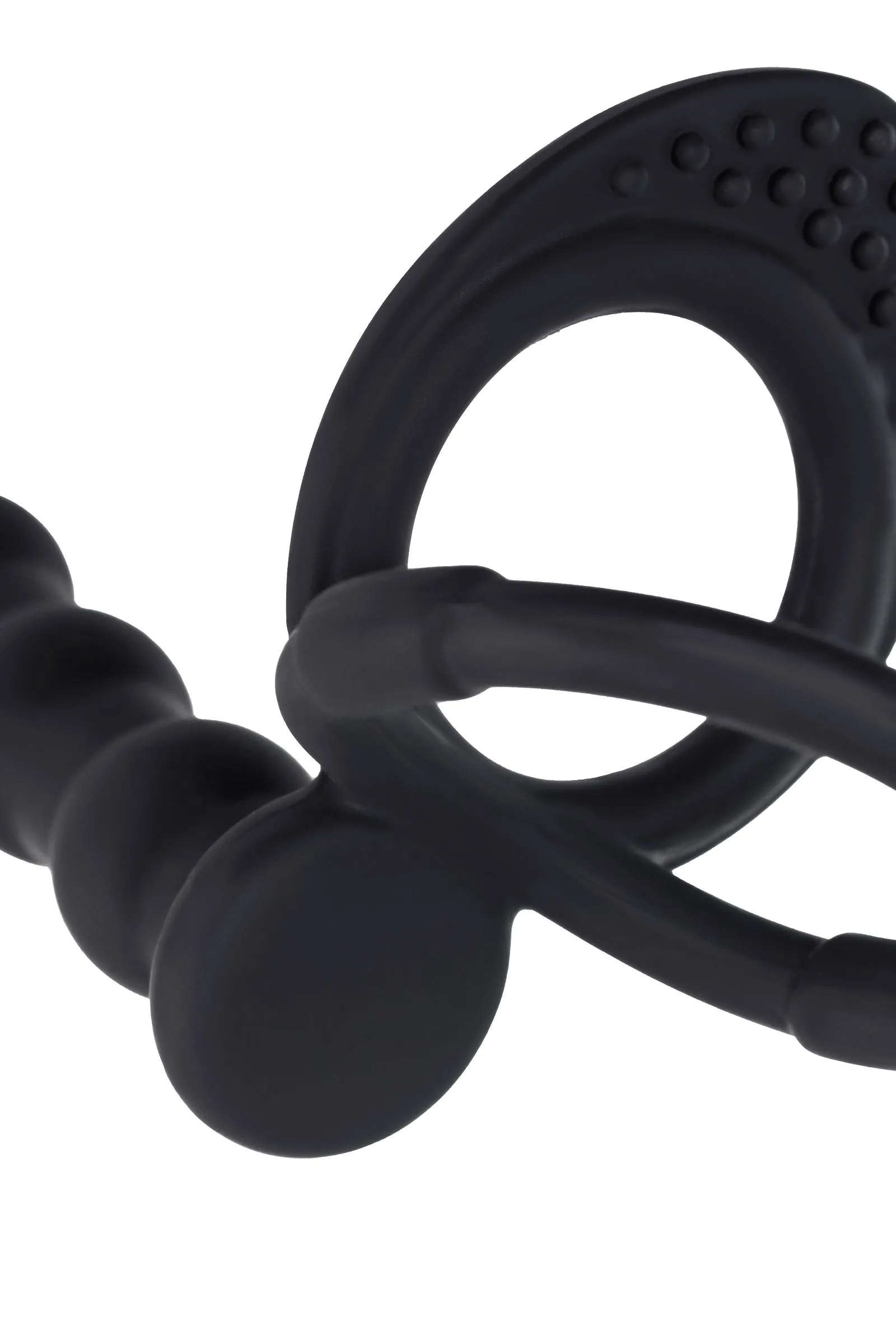 Рельефная насадка на пенис для двойного проникновения – это отличный выбор для любителей продвинутых сексуальных развлечений без участия третьих лиц. Насадка надежно фиксируется на теле двумя кольцами, которые плотно обхватывают ствол пениса и мошонку. Это оказывает дополнительный эффект для продления полового акта, а партнер в это время получает в два раза больше удовольствия, что ускоряет приближение оргазма. Шарики на стволе насадки придают пикантности проникновению. Пять анальных бусин стимулируют чувствительный сфинктер, усиливая наслаждение принимающего партнера. Материал насадки – гипоаллергенный медицинский силикон. Рабочая длина насадки 12,5 см, диаметр в самой широкой части 2,3 см. Диаметр колец 3,7см/ 4,5 см. Материал: силикон Цвет: черный