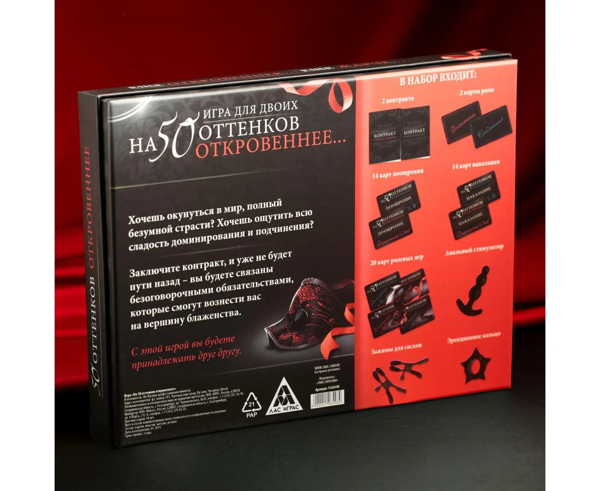 Для начала распределите роли и вручите друг другу по контракту. Кто-то из вас будет доминантом, а другой — сабмиссивом. Разыграйте один из жарких ролевых сценариев. А после решите, поощрения или наказания заслуживает сабмиссив. Вытягивайте карточки из соответствующих колод и воплощайте все фантазии в жизнь! А испытать наивысшее наслаждение от игры вам помогут горячие аксессуары.