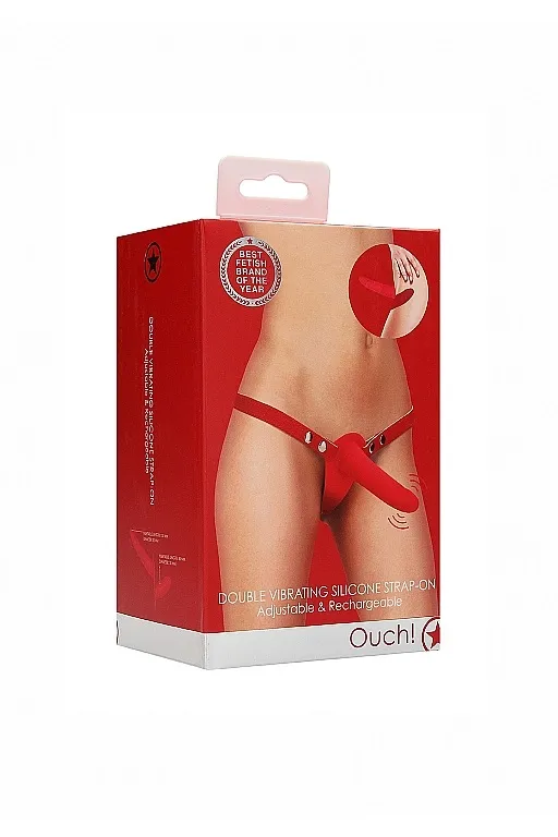 Double Vibrating Silicone Strap-On - Adjustable – женский страпон с креплением с помощью универсальных полиуретановых ремешков. Он состоит из двух почти одинаковых частей, различающихся только размером и степенью наклона к основанию. Основа страпона изготовлена из качественного силикона, который не содержит фталатов и совершенно безопасен для здоровья. Эта игрушка с 10 скоростями и сверхмощным моторчиком, который разгоняется до 7500 об/мин при шуме меньше 55 дБ.
