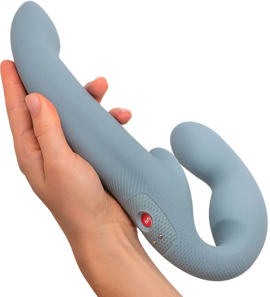 Идеально сбалансированный безремневой двойной фаллоимитатор Share Vibro Pro представлен в виде конструкции, которая легко удерживается телом, вес страпона 480 г. Анатомический дизайн обеспечивает комфортное и безопасное использование, предотвращая соскальзывание и удерживая головку вертикально во время игры. При вагинальном введении короткий конец игрушки упирается в лобковую кость, что позволяет мышцам промежности легко удерживать игрушку даже без специальных ремней или трусиков!