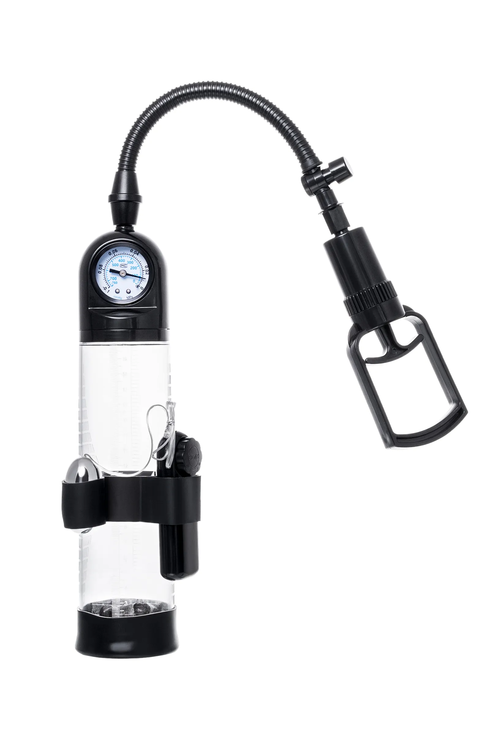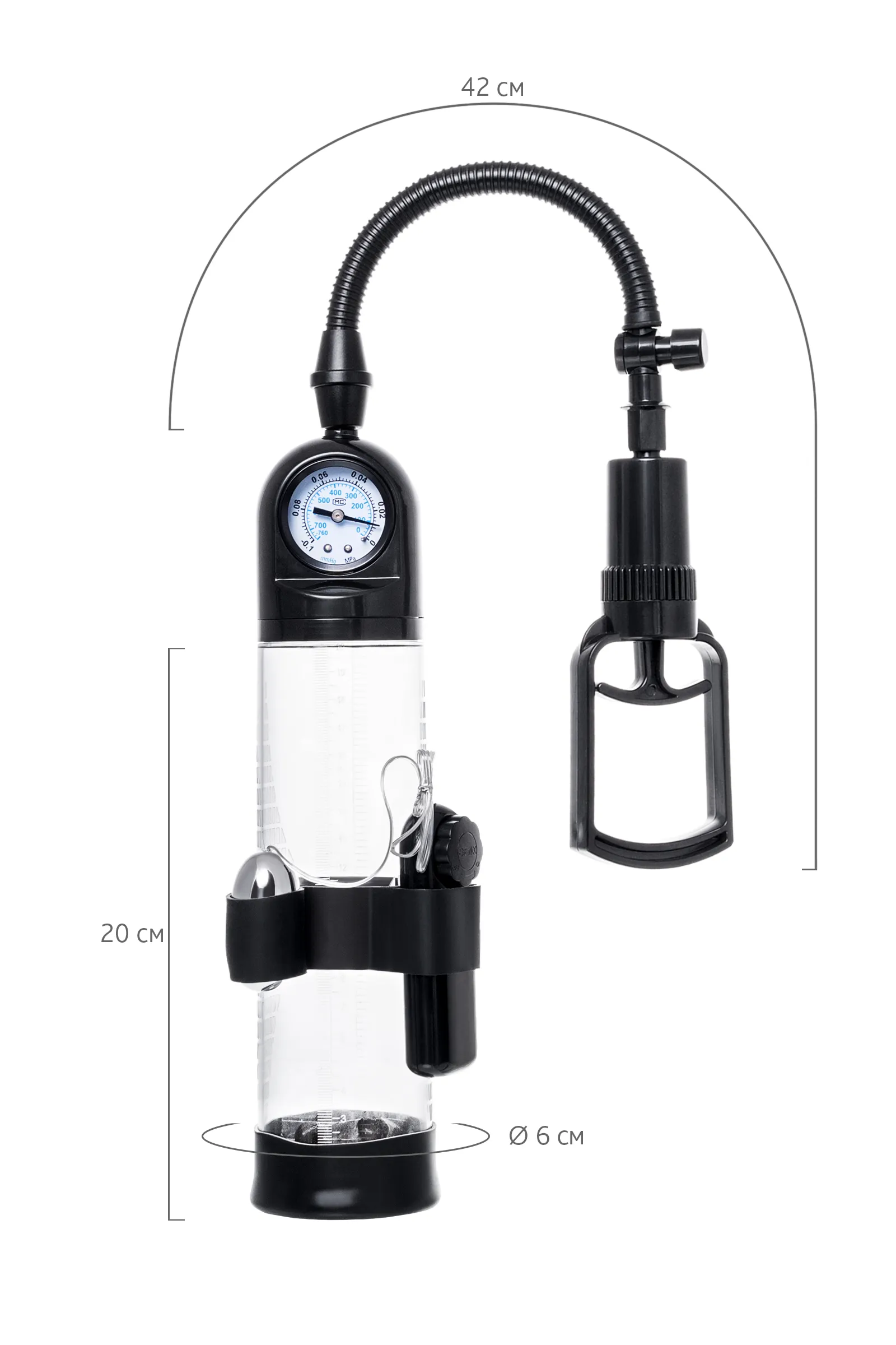 Гарант сексуального могущества для мужчины не только крепкая и надежная эрекция, но и внушительный размер орудия. Для тех, кто стремится достичь впечатляющих результатов в области увеличения размеров пениса, рекомендуется механическая помпа с вибрацией Aksel от Sexus® Men. С помпой Aksel серии Sexus® Men Training легко управлять своими тренировками по пенбилдингу, усиливать эрекцию и получать новые ощущения от полового акта. Мультивибрация делает процесс не только полезным, но и приятным. Регулируйте вибростимуляцию с помощью пульта и вибропули на корпусе помпы. Для тренировки, а также чтобы подготовить себя к длительному и яркому сексу, вставьте свой пенис в колбу и откачайте воздух с помощью рычага. Благодаря отрицательному давлению увеличивается приток крови к половому члену, за уровнем давления удобно следить с помощью встроенного манометра. Прозрачный ABS-пластик позволяет наблюдать как пенис набирает силу и увеличивается в размере. А измерительная шкала позволит отслеживать результаты прямо в процессе. Для достижения ощутимых результатов рекомендуются систематические занятия по программе эффективного тренинга, которая входит в комплект. Регулярное использование вакуумной помпы Aksel от Sexus® Men позволяет: последовательно увеличить длину и диаметр полового члена, делая его более внушительным сделать эрекцию более стабильной, крепкой и продолжительной повысить сексуальную выносливость и половое влечение поднять уверенность в своих возможностях и совершать новые сексуальные подвиги понизить вероятность образований аномальных фиброзных тканей Помпа Aksel комплектуется поршневым рычагом для разрежения воздуха, механическим манометром, клапаном для быстрого сброса давления, вибропулей с пультом управления и программой для эффективных тренировок. Гофрированный шланг, силиконовая насадка, качественные материалы – все вместе это делает использование помпы Aksel не только безопасным, но и комфортным!
