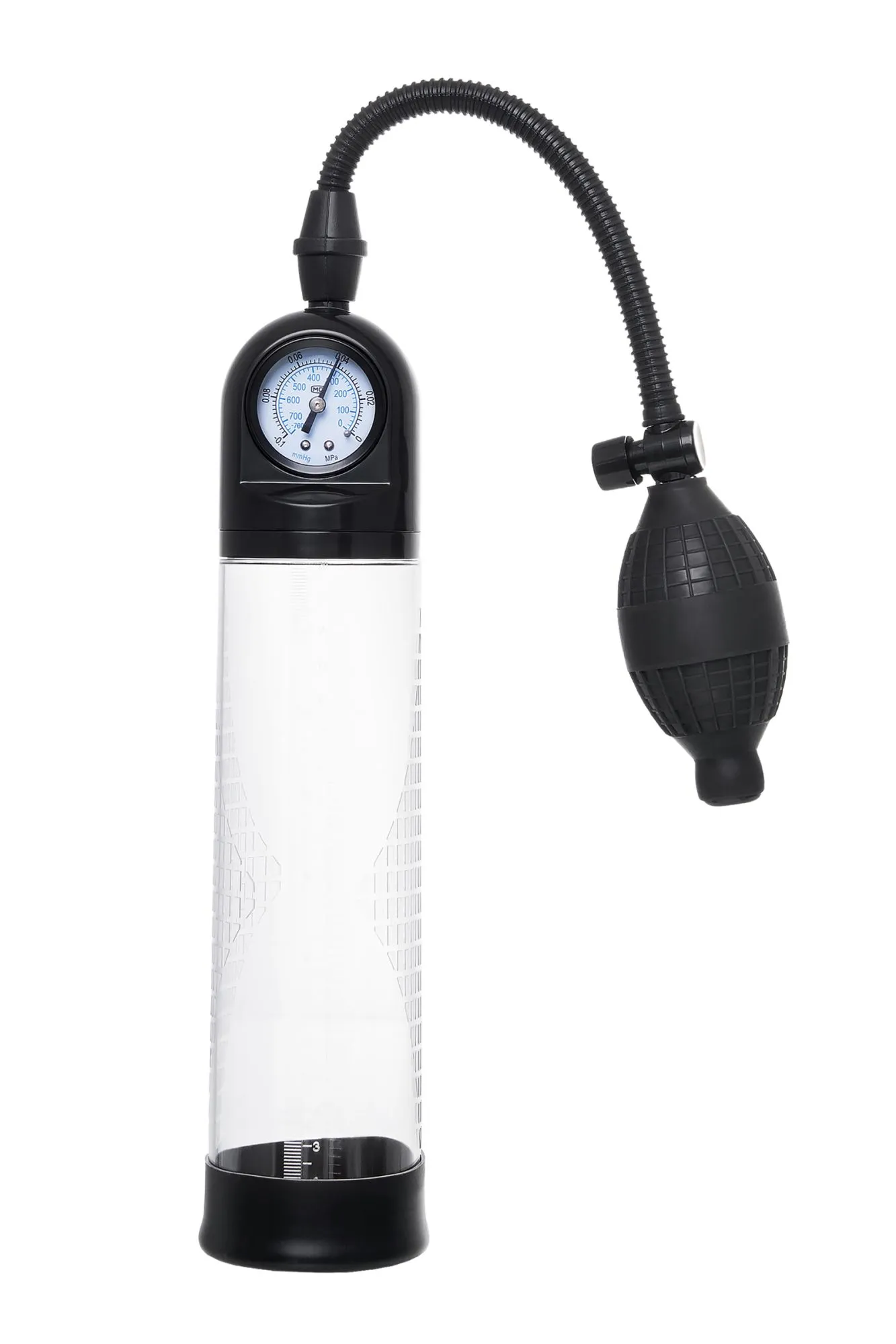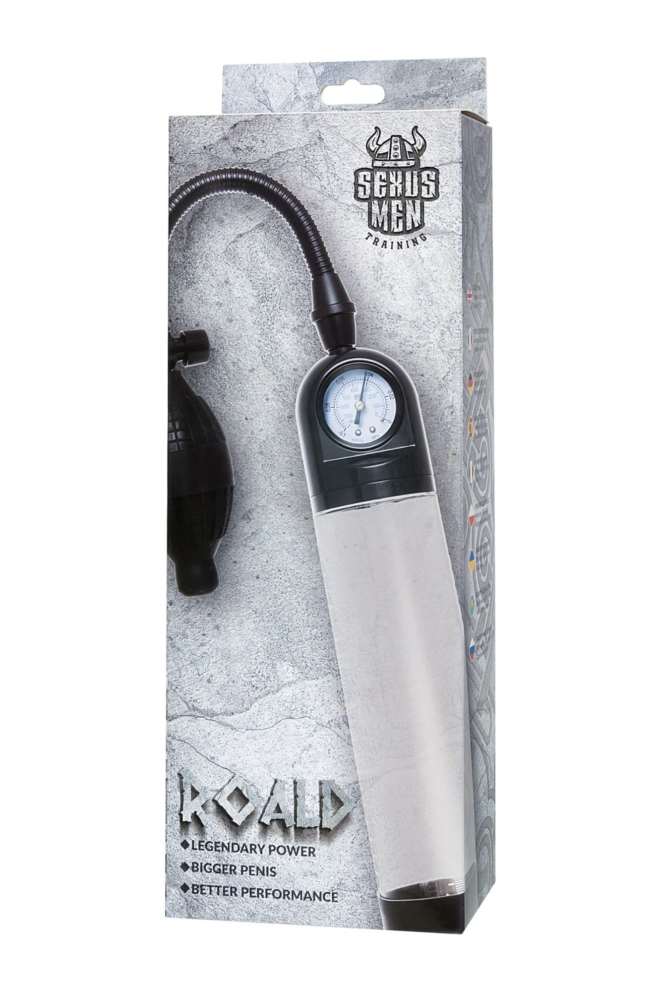 Гарант сексуального могущества для мужчины не только крепкая и надежная эрекция, но и внушительный размер орудия. Для тех, кто стремится достичь впечатляющих результатов в области увеличения размеров пениса, рекомендуется механическая помпа Roald от Sexus® Men. С помпой Roald серии Sexus® Men Training легко управлять своими тренировками по пенбилдингу, усиливать эрекцию и получать новые ощущения от полового акта. Для тренировки, а также чтобы подготовить себя к длительному и яркому сексу, вставьте свой пенис в колбу и откачайте воздух с помощью груши. Благодаря отрицательному давлению увеличивается приток крови к половому члену, за уровнем давления удобно следить с помощью встроенного манометра. Прозрачный ABS-пластик позволяет наблюдать как пенис набирает силу и увеличивается в размере. А измерительная шкала позволит отслеживать результаты прямо в процессе. Для достижения ощутимых результатов рекомендуются систематические занятия по программе эффективного тренинга, которая входит в комплект. Регулярное использование вакуумной помпы Roald от Sexus® Men позволяет: последовательно увеличить длину и диаметр полового члена, делая его более внушительным сделать эрекцию более стабильной, крепкой и продолжительной повысить сексуальную выносливость и половое влечение поднять уверенность в своих возможностях и совершать новые сексуальные подвиги понизить вероятность образований аномальных фиброзных тканей Помпа Roald комплектуется грушей для разрежения воздуха, механическим манометром, клапаном для быстрого сброса давления, и программой для эффективных тренировок. Гофрированный шланг, силиконовая насадка, качественные материалы – все вместе это делает использование помпы Roald не только безопасным, но и комфортным!