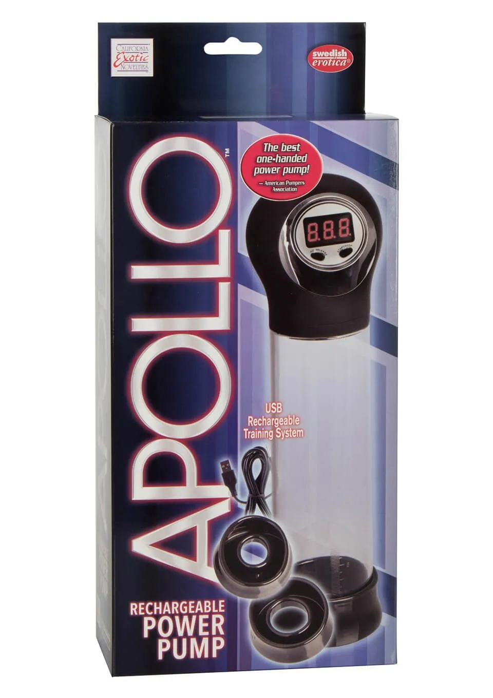 Apollo Rechargeable Power Pump - это автоматическая вакуумная помпа с перезаряжаемым аккумулятором для мужчин. Она проста в использовании, ведь контроль давления управляется одной рукой с помощью кнопок, а при малейшем дискомфорте Вы всегда сможете быстро сбросить воздух. Помпа оснащена легко читаемым LED-дисплеем, на котором будет легко отслеживать уровень давления внутри цилиндра. На самом цилиндре есть шкала измерений, благодаря которой Вы сможете отмечать достигнутый результат. В комплекте с помпой идут три насадки разного диаметра (кольца для уплотнения), которые изготовлены из термопластичной резины.