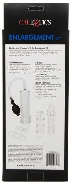 Данный комплексный набор содержит все, что Вам нужно, чтобы улучшить свою чувствительность и увеличить стимуляцию для поддержания акта любви. В комплекте набора Вы найдете помпу для пениса с фланцевым основанием и съемной грушей, несколько хорошо тянущихся силиконовых колец и насадок из термопластичной резины.