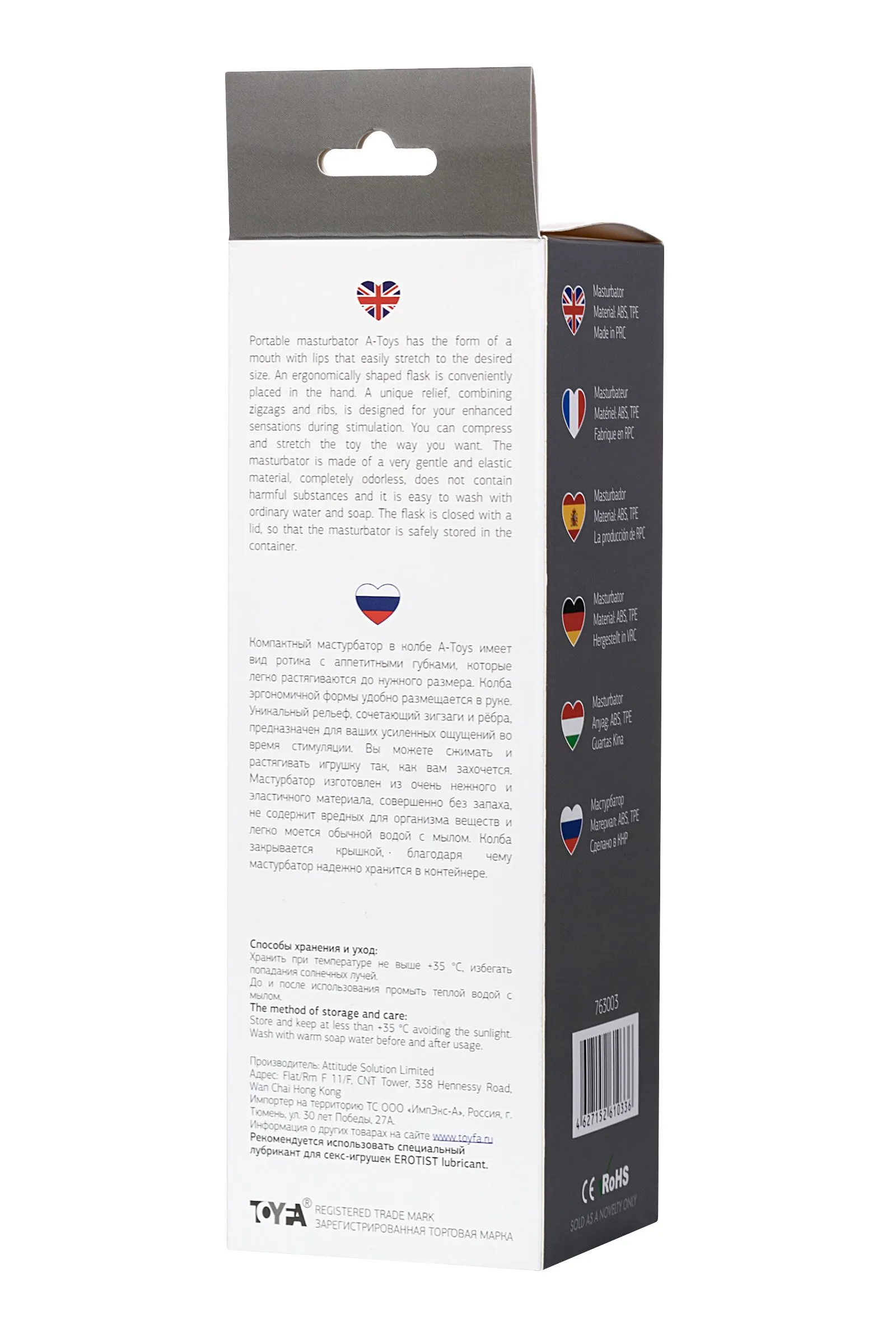 Компактный мастурбатор в колбе A-Toys имеет вид ротика с аппетитными губками, которые легко растягиваются до нужного размера. Колба эргономичной формы удобно размещается в руке. Уникальный рельеф, сочетающий зигзаги и рёбра, предназначен для ваших усиленных ощущений во время стимуляции. Вы можете сжимать и растягивать игрушку так, как вам захочется. Мастурбатор изготовлен из очень нежного и эластичного материала, совершенно без запаха, не содержит вредных для организма веществ и легко моется обычной водой с мылом. Колба закрывается крышкой, благодаря чему мастурбатор надежно хранится в контейнере.