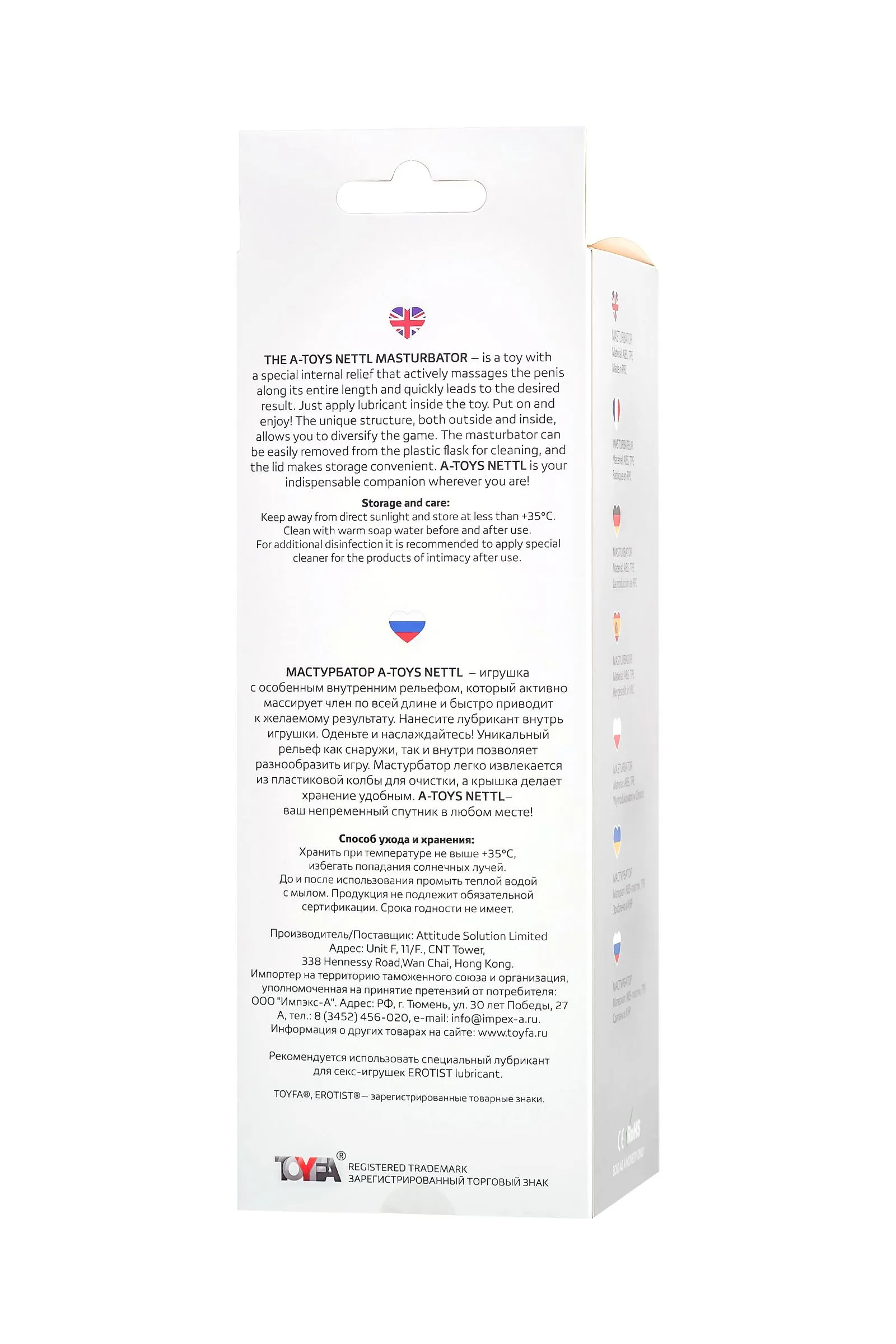 Мастурбатор A-Toys Nettl – игрушка с особенным внутренним рельефом, который активно массирует член по всей длине и быстро приводит к желаемому результату. Нанесите лубрикант внутрь игрушки. Оденьте и наслаждайтесь! Уникальный рельеф как снаружи, так и внутри позволяет разнообразить игру. Мастурбатор легко извлекается из пластиковой колбы для очистки, а крышка делает хранение удобным. A-Toys Nettl - ваш непременный спутник в любом месте! Общий размер:18,5 см Рабочий размер: 15 см