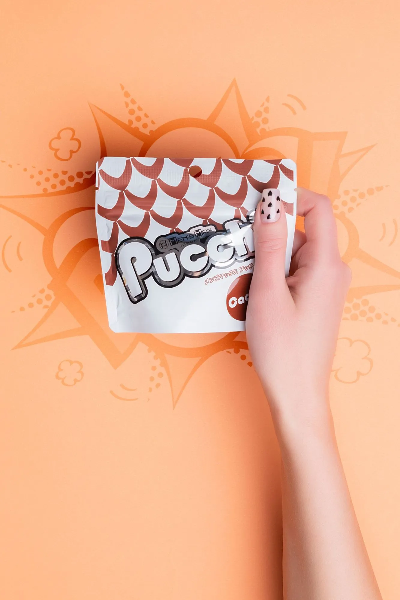 Обновленный карманный мастурбатор MensMax Pucchi Cacao имеет увеличенный размер, улучшенную эластичность, более четкий рельеф, и выделяет еще больше смазки – берите его с собой куда угодно. Все что вам нужно – это мастурбатор и немного воды. Самоувлажняющийся мастурбатор невероятно удобен в командировках, путешествиях и в повседневной жизни. Благодаря запатентованной японской технологии, инновационный материал +Wetch при взаимодействии с водой выделяет густой гель, усиливающий скольжение. Даже во время длительного массажа пениса гель не скатывается и не высыхает. Достаточно добавить немного воды, чтобы испытать полный спектр эмоций от интимного удовольствия. Многоразовая непрозрачная упаковка с замочком-клапаном служит мешочком для хранения. Упругий, но эластичный материал подходит для мужчин с любыми размерами пениса. Материал игрушки тактильно приятный и быстро принимает температуру тела. Чтобы усилить ощущения, добавьте теплую воду и наслаждайтесь температурными играми. MensMax Pucchi производят на новейшем оборудовании в Японии, что гарантирует качество и безопасность использования. Мастурбатор Pucchi Cacao представляет собой мягкую трехъярусную елочку с одним отверстием. Внешняя сторона гладкая и нежная, а внутри выступающие конусы, напоминающие зерна какао. Хаотично расположенные выпуклости обеспечивают дополнительный массаж пениса и особенно ярко ощущаются при стимуляции головки. Чем глубже проникновение, тем ощутимее стимуляция. Инструкция: Достаньте мастурбатор из упаковки и налейте в него немного воды (чайную ложку). Старайтесь не намочить внешнюю сторону игрушки, чтобы смазка не мешала вам в процессе. Распределите образовавшийся гель по внутренней поверхности девайса. Начните с массажа головки, так вы сможете получить максимальное наслаждение от рельефа и настроиться на нужный лад. Совершайте вращательные движения по часовой стрелке или против нее. Для предварительных ласк партнерши выверните мастурбатор наизнанку и наденьте на пальцы. После игр промойте Pucchi водой или средством для очистки игрушек. Когда израсходуете смазку мастурбатора, выбирайте лубриканты на водной основе.