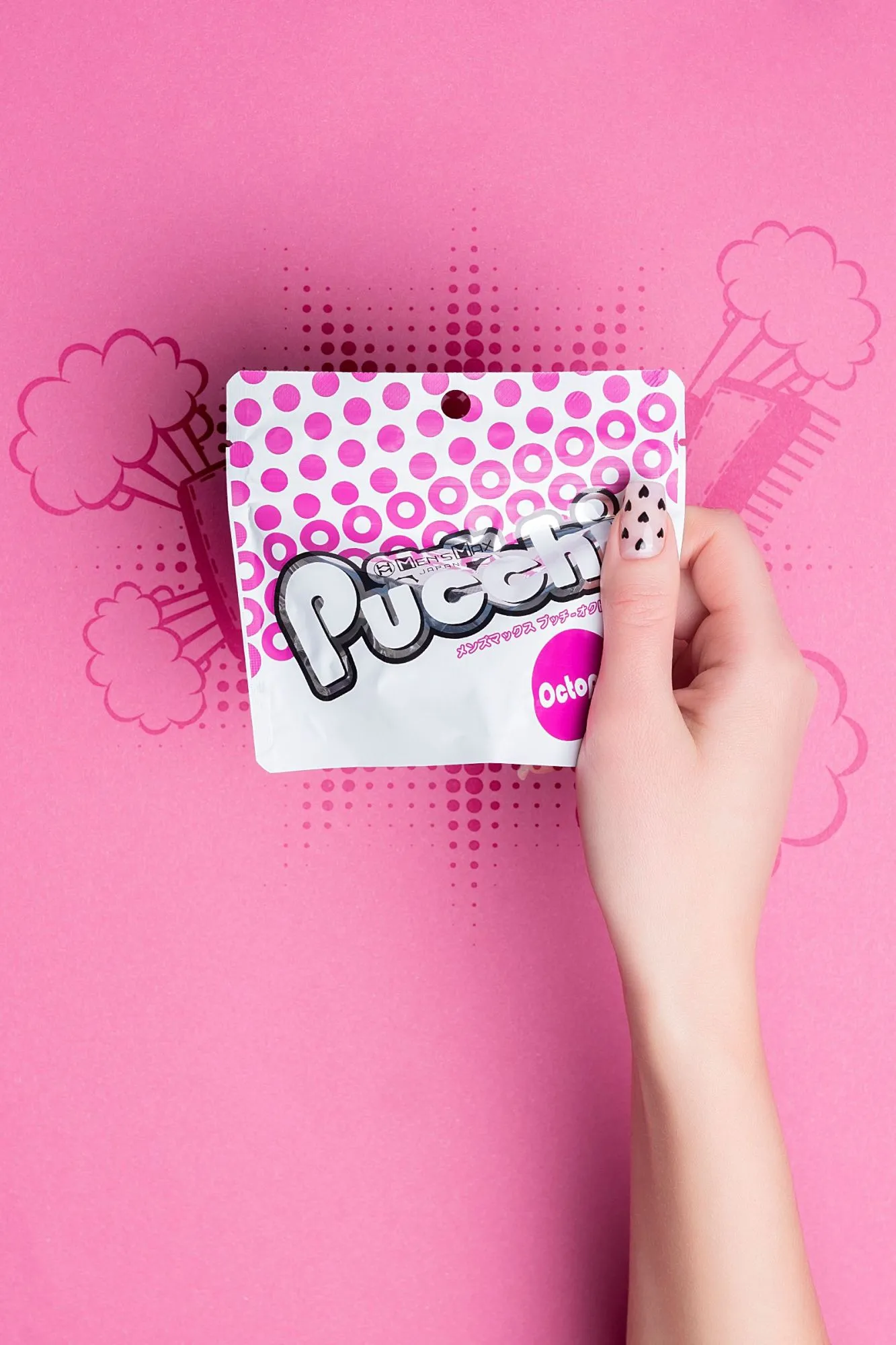 Обновленный карманный мастурбатор MensMax Pucchi Octopus имеет увеличенный размер, улучшенную эластичность, более четкий рельеф, и выделяет еще больше смазки – берите его с собой куда угодно. Все что вам нужно – это мастурбатор и немного воды. Самоувлажняющийся мастурбатор невероятно удобен в командировках, путешествиях и в повседневной жизни. Благодаря запатентованной японской технологии, инновационный материал +Wetch при взаимодействии с водой выделяет густой гель, усиливающий скольжение. Даже во время длительного массажа пениса гель не скатывается и не высыхает. Достаточно добавить немного воды, чтобы испытать полный спектр эмоций от интимного удовольствия. Многоразовая непрозрачная упаковка с замочком-клапаном служит мешочком для хранения. Упругий, но эластичный материал подходит для мужчин с любыми размерами пениса. Материал игрушки тактильно приятный и быстро принимает температуру тела. Чтобы усилить ощущения, добавьте теплую воду и наслаждайтесь температурными играми. MensMax Pucchi производят на новейшем оборудовании в Японии, что гарантирует качество и безопасность использования. Мастурбатор Pucchi Octopus представляет собой мягкую трехъярусную елочку с одним отверстием. Внешняя сторона гладкая и нежная, а внутри комбинированный рельеф, напоминающий присоски на щупальцах осьминога, который обеспечивает дополнительный массаж пениса, и особенно ярко ощущается при стимуляции головки. Чем глубже проникновение, тем ощутимее стимуляция. Инструкция: Достаньте мастурбатор из упаковки и налейте в него немного воды (чайную ложку). Старайтесь не намочить внешнюю сторону игрушки, чтобы смазка не мешала вам в процессе. Распределите образовавшийся гель по внутренней поверхности девайса. Начните с массажа головки, так вы сможете получить максимальное наслаждение от рельефа и настроиться на нужный лад. Совершайте вращательные движения по часовой стрелке или против нее. Для предварительных ласк партнерши выверните мастурбатор наизнанку и наденьте на пальцы. После игр промойте Pucchi водой или средством для очистки игрушек. Когда израсходуете смазку мастурбатора, выбирайте лубриканты на водной основе.