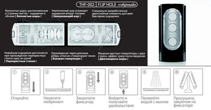 Корпус Flip Hole может быть открыт полностью, так что его легко можно будет помыть после использования. В комплект входит смазка.