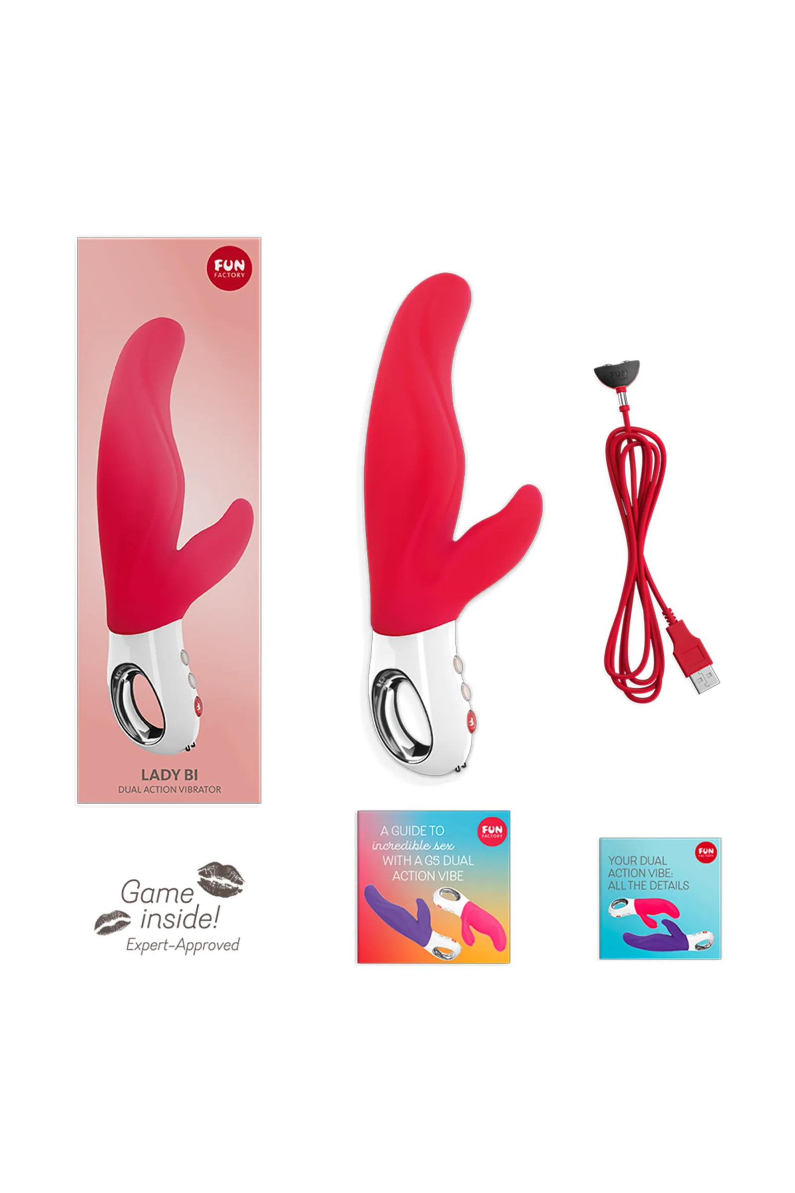 Изысканный вибратор двойного действия, выдержанный по размеру, удовлетворяющему ваши потребности Стимулирует область за шейкой матки, т.н. точку «А», что ведет к еще большему возбуждению и выделению смазки Использование технологии FlexiFUN Technology™ обеспечивает максимальное прилегание к телу Два моторчика создают объемную, глубоко проникающую вибрацию Перезаряжаем Изготовлен из безопасного для тела силикона Водонепроницаемый