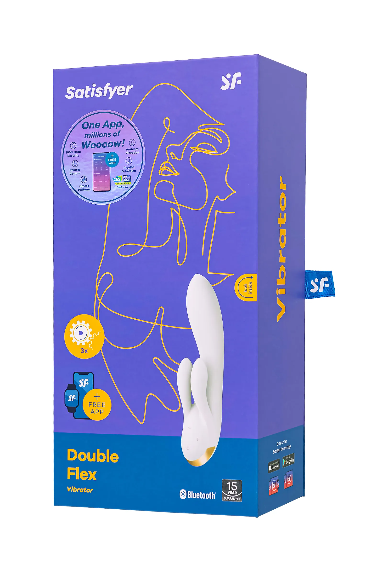 Позвольте себе тройной заряд энергии и наслаждения с вибратором Double Flex от Satisfyer. Этот кролик с тремя сверхмощными моторами погружает в мир одновременной стимуляции точки G и клитора. Гибкий Double Flex легко подстраивается под вашу анатомию, создавая уникальный контур, благодаря технологии Silicone Flex. Клиторальный отросток разделен на два ушка, которыми он обнимает клитор и дарит захватывающее удовольствие половым губам. Вариативность использования радует разнообразием – клиторальные и вагинальный отростки могут работать в разных ритмах. В вашем распоряжении 12 предустановленных режимов вибрации. Испытайте удовольствие по-настоящему с бесплатной функцией управление при помощи смартфона с поддержкой Bluetooth через приложение Satisfyer Connect, доступное на Android и iOS. Создавайте собственные уникальные режимы вибрации, существенно расширив возможности предустановленных режимов. Девайс способен вибрировать даже в такт музыке. Satisfyer Connect не имеет границ – передавайте управление наслаждением партнеру даже на большом расстоянии. Плавные изгибы и эргономичная форма обеспечивают легкое проникновение. Double Flex удобно лежит в руке и радует своим стильным и элегантным дизайном. Шелковистое силиконовое покрытие — фирменный знак Satisfyer, тактильно нежный и приятный на ощупь, он быстро адаптируется к температуре вашего тела. Длина вагинальной части 15,5 см, а диаметр – 3,4 см, что делает кролика идеальным вариантом для первой игрушки. Ощутите все прелести влажных приключений, ведь благодаря водонепроницаемой оболочке IPX7 Double Flex не только легок в уходе, но и безопасен для использования в ванне и душе. Чтобы получить максимум удовольствия и сохранить материал в наилучшем виде, рекомендуется пользоваться качественной смазкой на водной основе. После использования обязательно очищайте вибратор теплой водой со специальными бактерицидными спреями для интимных товаров. Особенности: 3 мощных мотора и вибрация по всей игрушке 2 клиторальных отростка 12 режимов вибрации и неограниченное количество режимов в приложении Satisfyer Connect с подключением через Bluetooth. Стильный современный дизайн и нежный, эластичный силикон без запаха, без аллергенов и вредных для здоровья веществ. Водонепроницаемый (IPX7) Идеальный вариант для первой игрушки Перезаряжаемый, магнитный USB-кабель. 15 лет гарантии от производителя.