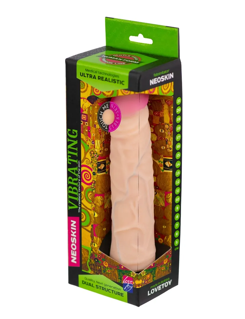Вибромассажёр телесного цвета. Имеет форму члена с ярко-выраженной головкой. Необычайно приятный, рельефный, выполненный из материала «Неоскин» , передающий эффект мягкой реалистичной текстуры кожи, не имеет швов. Виброэлемент расположен по всей длине изделия. Степень вибрации регулируется при помощи кнопки, расположенной в основании. Работает от 2АА батареек (нет в комплекте). Общая длина – 23 см, рабочая длина-15 см, максимальный диаметр - 4,5 см. Упаковка: картонная коробка с принтом.