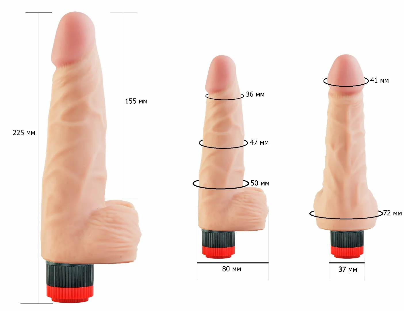 Вибромассажёр телесного цвета. Имеет форму члена с ярко-выраженной головкой. Необычайно приятный, рельефный, выполненный из материала «Неоскин» , передающий эффект мягкой реалистичной текстуры кожи, не имеет швов. Виброэлемент расположен по всей длине изделия. Степень вибрации регулируется при помощи кнопки, расположенной в основании. Общая длина – 22,5 см, рабочая длина-15 см, максимальный диаметр -4,5 см. Упаковка: картонная коробка с принтом.