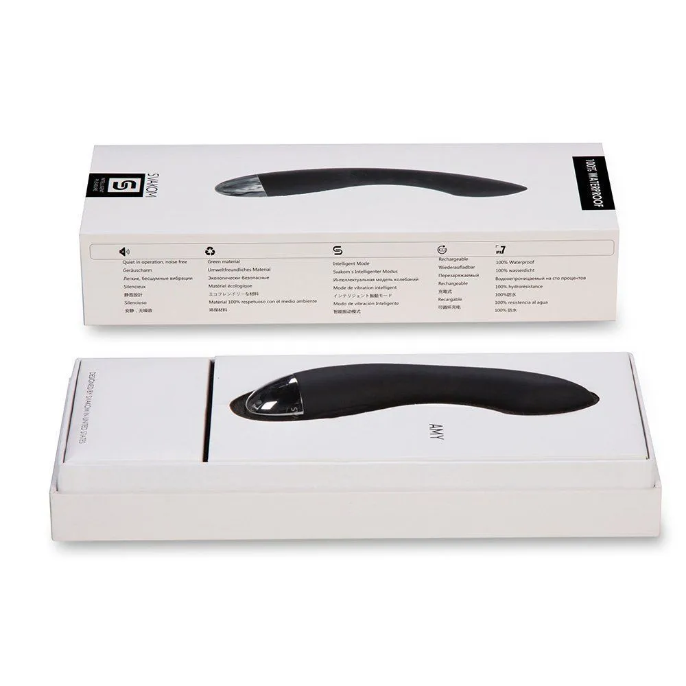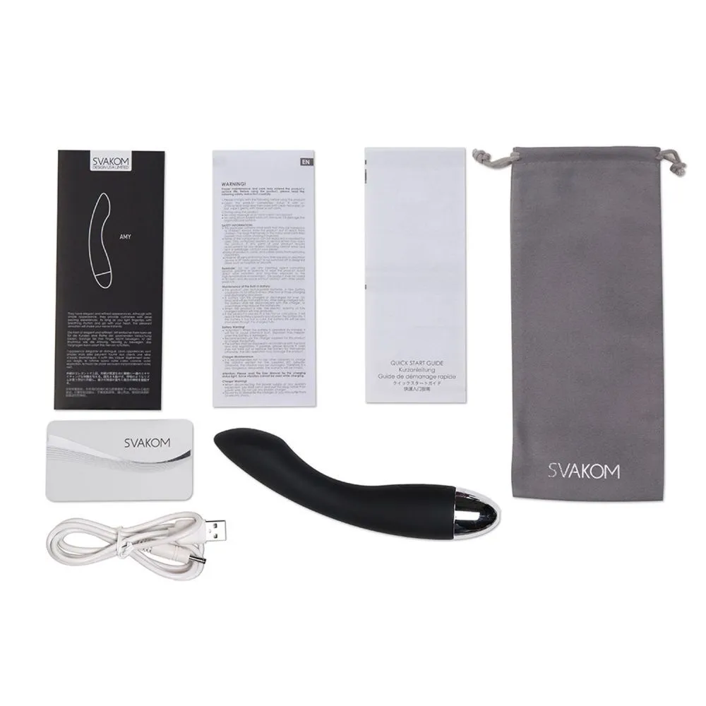 Вибромассажер - это секс игрушка, разработанная для вибрирующего массажного воздействия на половые органы. Предназначен для прелюдии, тренировок мышц влагалища, изучения эрогенных зон, компенсации преждевременной эякуляции партнёра. Вибромассажер Amy от компании Svakom, кроме прочего, подойдет для направленной стимуляции точки G, благодаря его изогнутому стволу и особой форме головки.