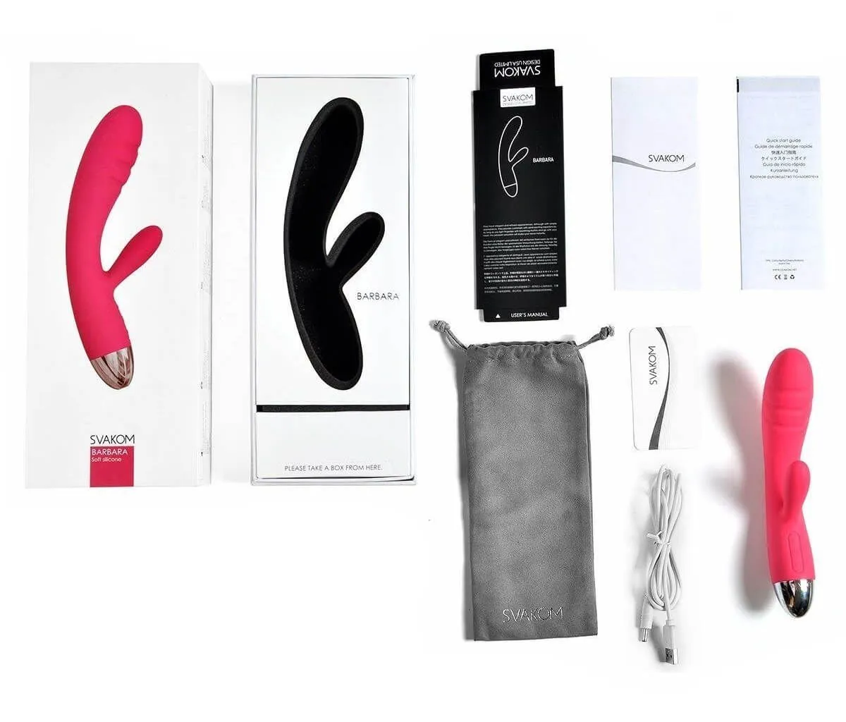 Barbara от Svakom - это один из самых элегантных вибраторов, который может подарить Вам одновременную стимуляцию двух эрогенных зон. Загнутый кончик вибратора предназначен для эффективной стимуляции точки G, а головка с ребристым рельефом сделает ощущения от массажа еще более интенсивными. Небольшой стимулятор в это же время будет ласкать клитор, доводя Вас до яркого оргазма.
