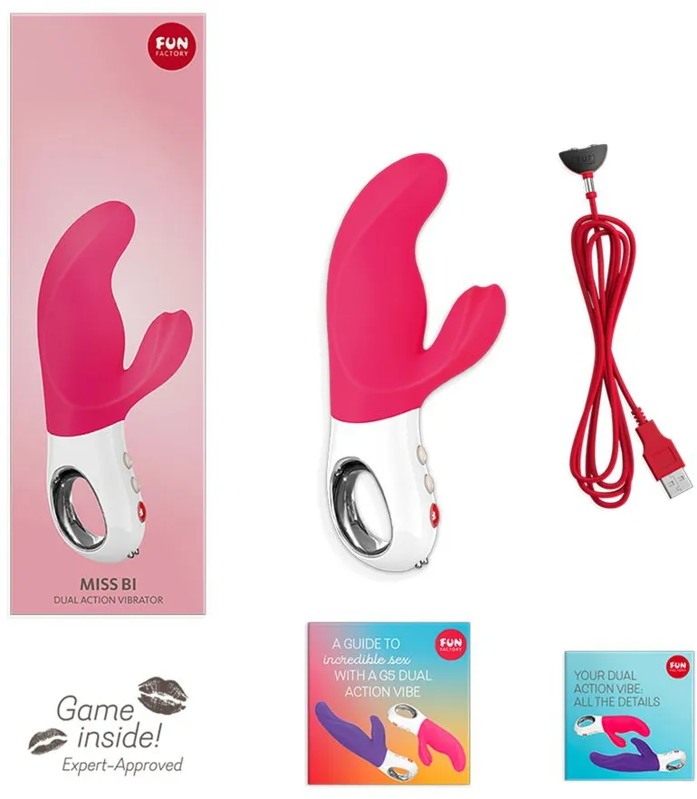 Элегантный вибратор двойного действия MISS BI – это совершенный результат тщательной разработки и многочисленных тестов немецкого производителя. Продуманная до мелочей, анатомически правильная форма.