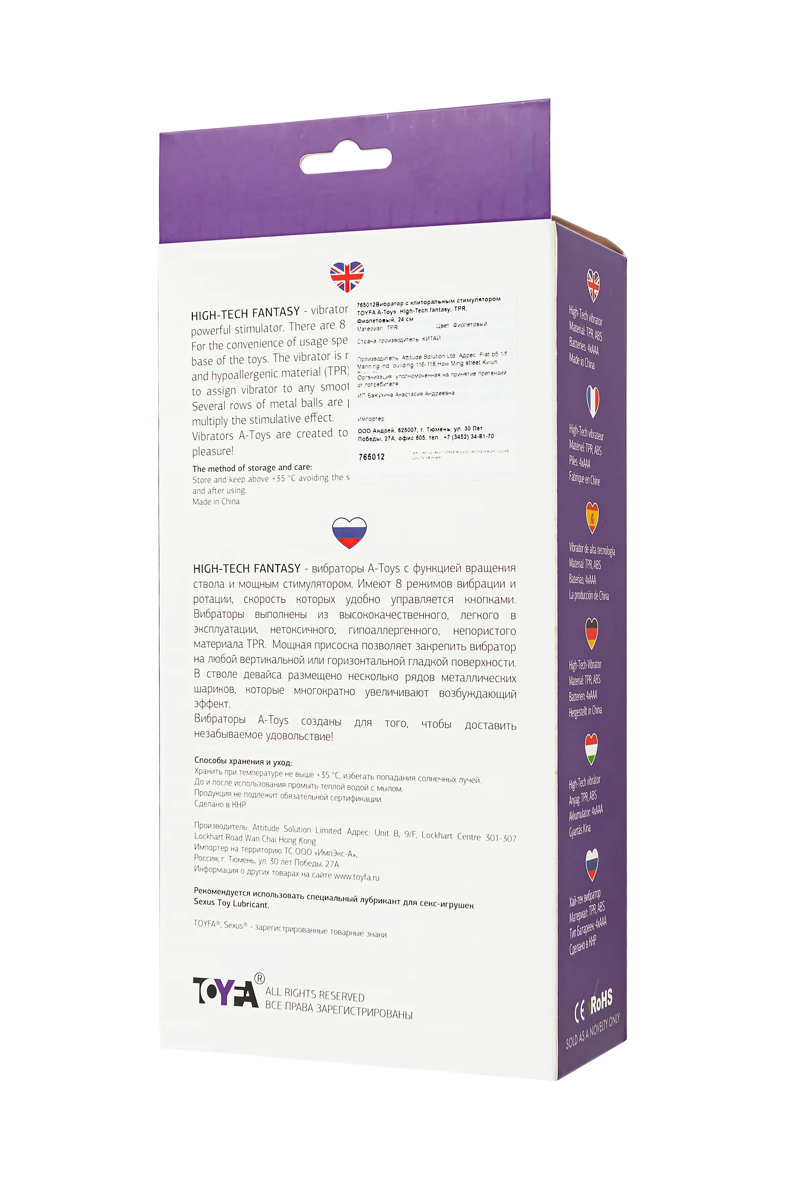 High-Tech fantasy - вибраторы A-Toys с функцией вращения ствола и мощным клиторальным стимулятором. Имеют 8 режимов вибрации и ротации, скорость которых удобно управляется кнопками на рукояти игрушки. Вибраторы выполнены из высококачественного, легкого в эксплуатации, нетоксичного, гипоаллергенного, непористого материала TPR. Мощная присоска позволяет закрепить вибратор на любой вертикальной или горизонтальной гладкой поверхности. В стволе девайса размещено несколько рядов металлических шариков, которые многократно увеличивают возбуждающий эффект. Вибраторы A-Toys созданы для того, чтобы доставить незабываемое удовольствие! Рабочая длина 16,5 см.