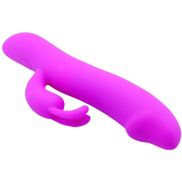 Изящный вибратор отличается гибким клиторальным отростком в виде зайчика с шаловливыми ушками, который в процессе стимуляции доведет свою хозяйку до высшей точки наслаждения. Изделие имеет гладкую поверхность, 7 режимов вибрации и 7 режимов фрикций. Режимы регулируются сенсорными кнопками в основании игрушки. Материал - силикон. Длина изделия – 20,5 см, рабочая длина - 12 см, диаметр – 3,4 см, длина отростка — 6,5 см, диаметр- 2 см. Работает от USB провода (есть в комплекте). Упаковка: картонная коробка с принтом.
